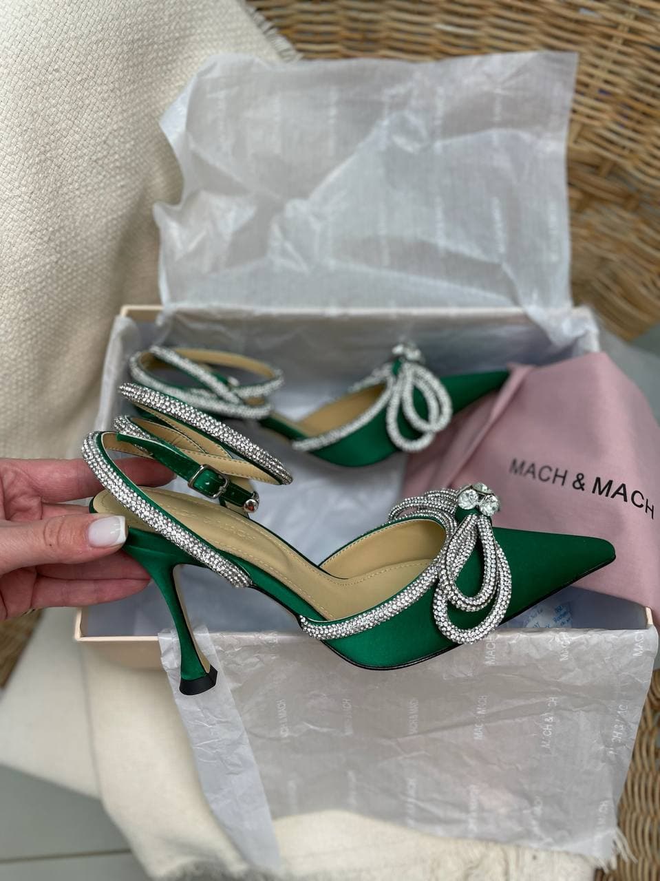 Босоножки Mach & Mach LUX-62302 — это роскошная модель, сочетающая в себе элегантность и эффектный дизайн. Туфли выполнены в насыщенном изумрудном цвете и украшены сверкающими кристаллами, создающими акцент на изящных линиях. Остроконечный носок и тонкая шпилька подчеркивают женственность образа, делая их идеальным дополнением для вечерних выходов и торжественных мероприятий.