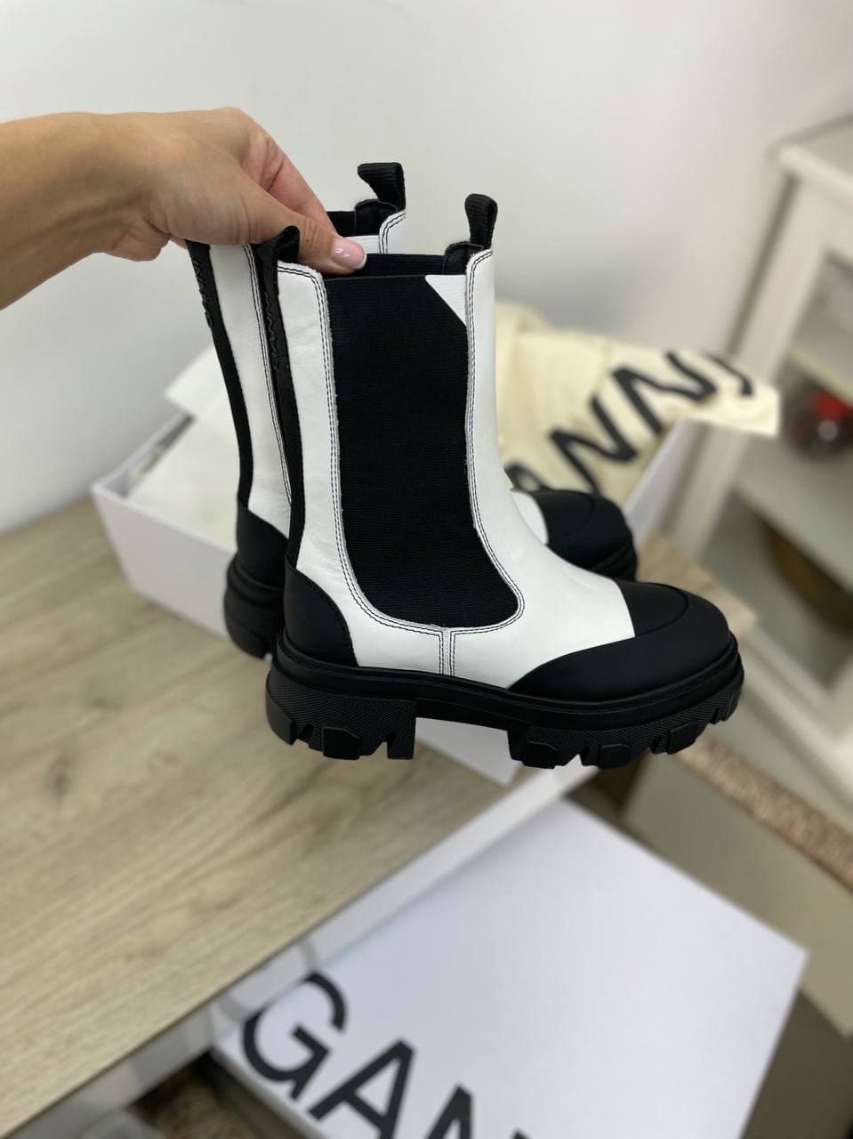 Ботинки LUX-57402 от Ganni – это стильное и трендовое решение для современной женщины. Их контрастный черно-белый дизайн и массивный протектор делают их идеальным выбором для создания ярких образов. Эти ботинки сочетают в себе комфорт и актуальные модные тенденции, обеспечивая уверенность в каждом шаге.