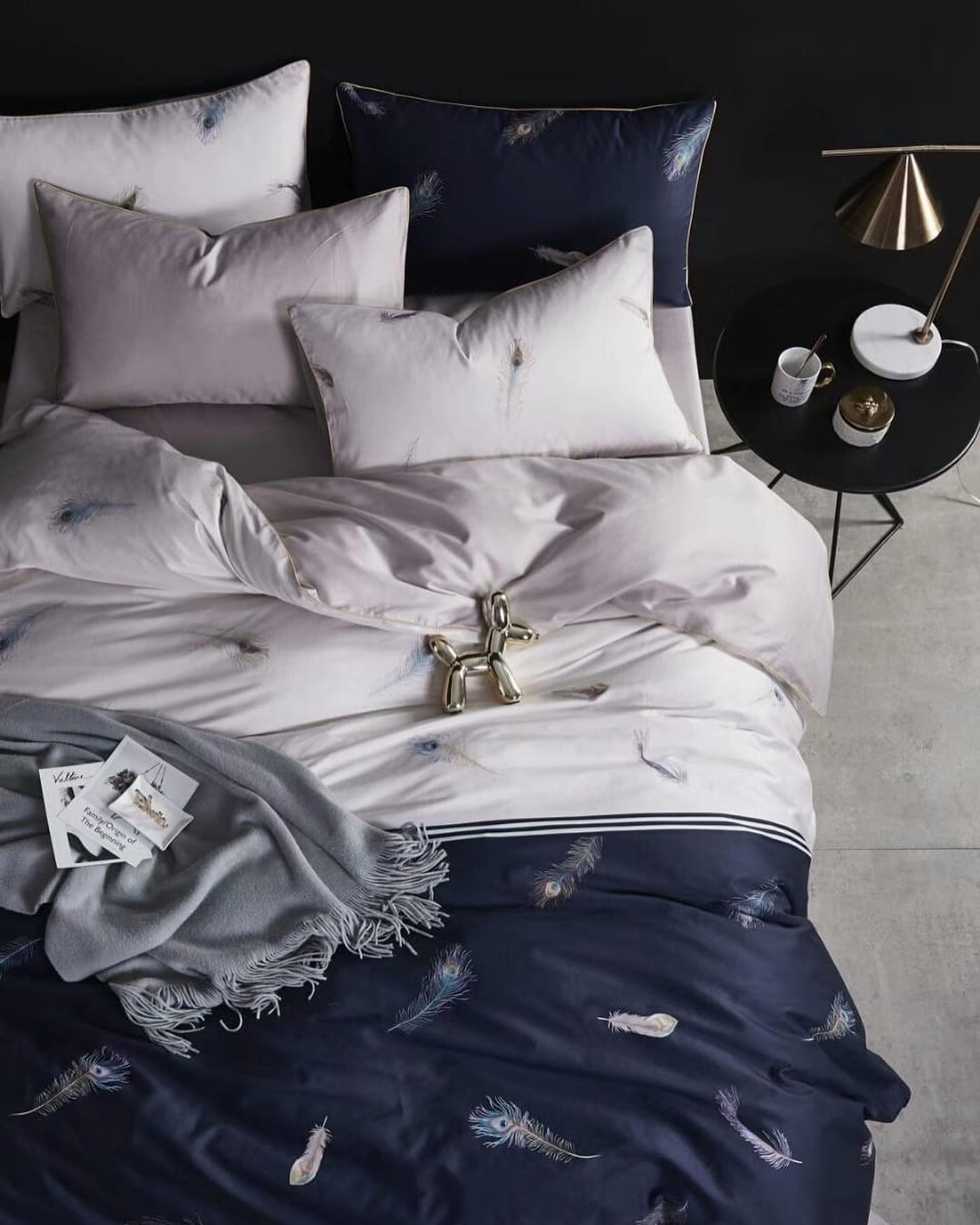 Комплект постельного белья LUX-32964 от бренда LUX-CRIME представляет собой стильное решение для спальни, сочетающее элегантность и современный дизайн. На темно-синем фоне изображены изящные перья, а верхняя часть комплекта выполнена в нежном светло-сером оттенке, создавая гармоничный контраст. Этот комплект добавит изысканности любому интерьеру.
