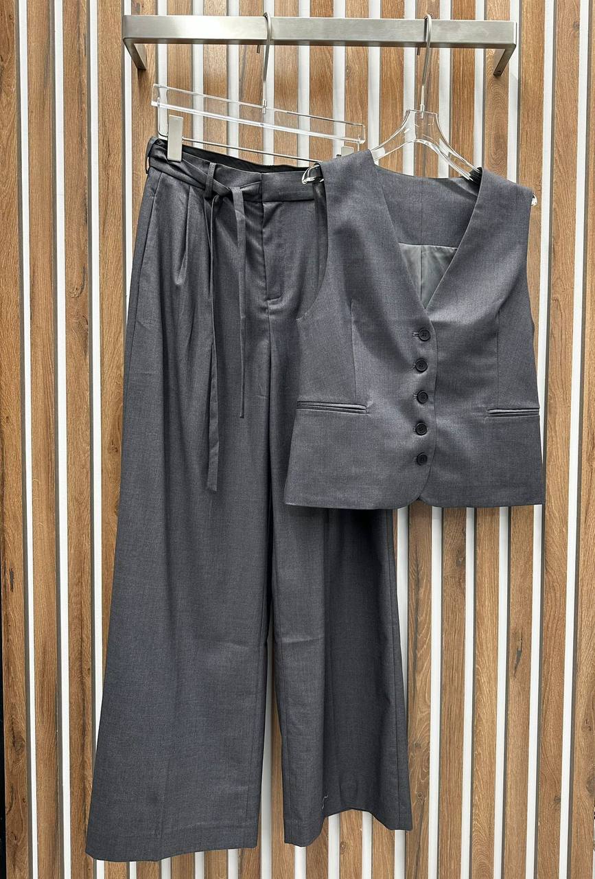 Костюм женский LUX-93069 — это элегантный ансамбль, который состоит из жилета и брюк. Данный костюм выполнен в классическом стиле, придающем образу утонченность и деловой шик. Серый цвет делает его универсальным для различных поводов.