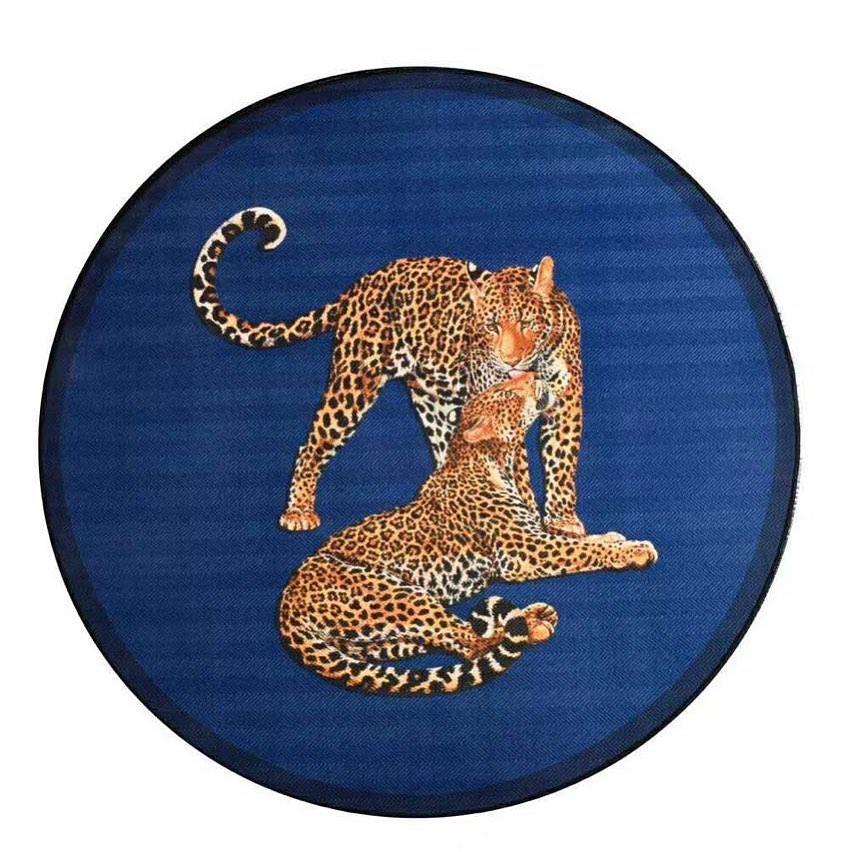 Ковер LUX-42875 от Luxe Crime представляет собой стильный круглый ковер с эффектным принтом. Дизайн в стиле современной классики с изображением двух леопардов на глубоком синем фоне создает элегантный и роскошный вид, который прекрасно дополнит любой интерьер, добавляя ему индивидуальности и изысканности.