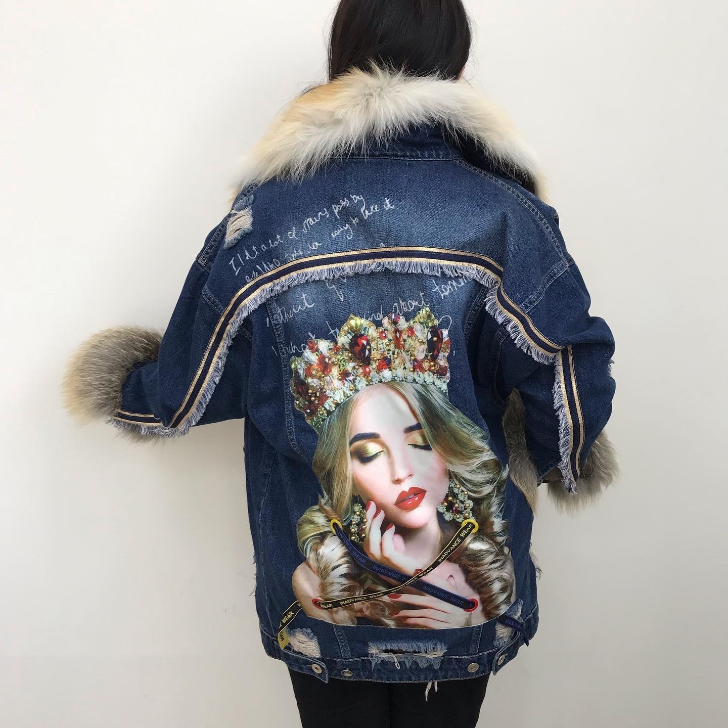 Эта джинсовая куртка-трансформер LUX-29618 от LUXE-CRIME сочетает в себе дерзкий стиль и оригинальный дизайн. Украшенная эффектным принтом с изображением девушки в короне и вышивкой, она станет ярким акцентом вашего образа. Меховая отделка на воротнике и манжетах добавляет изделию изысканности и дополнительного тепла.
