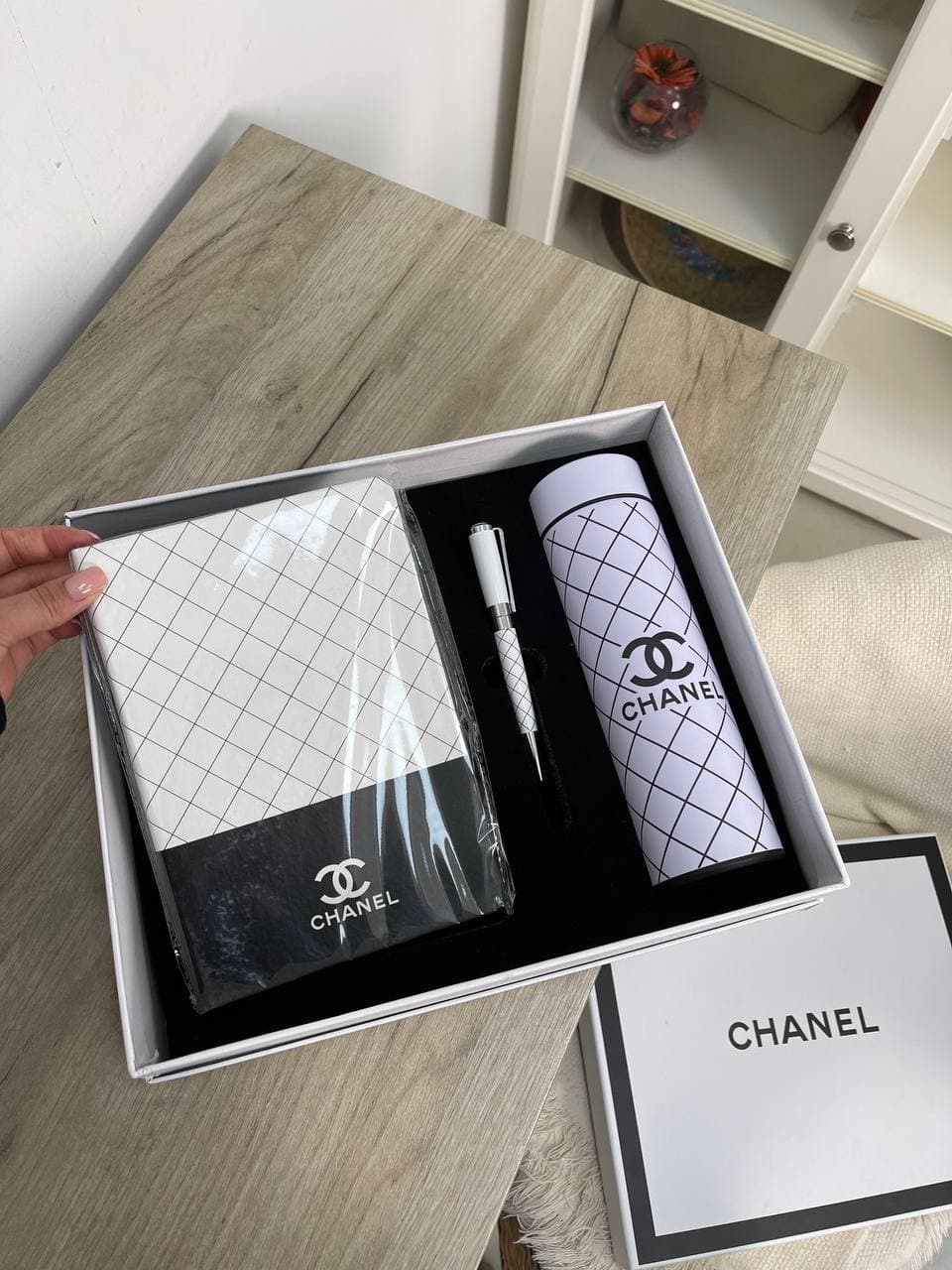 Набор ежедневник с термосом LUX-61857 от CHANEL представляет собой стильный и практичный комплект для деловых людей и любителей элегантных аксессуаров. Дизайн набора выдержан в классическом стиле бренда, что делает его отличным подарком.