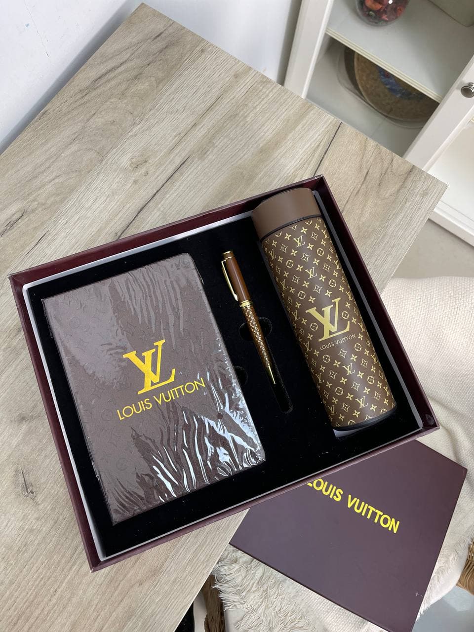 Набор ежедневник с термосом LUX-61858 от Louis Vuitton – это стильное и практичное решение для тех, кто ценит элегантность и функциональность. Комплект включает в себя удобный ежедневник и термокружку, выполненные в фирменном дизайне бренда. Этот набор станет отличным спутником в повседневной жизни, будь то рабочие будни или путешествия.
