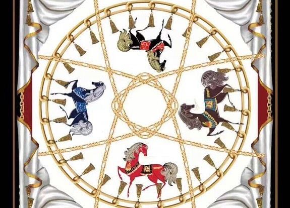 Эта наволочка для декоративной подушки LUX-31616 от Luxe-Crime выполнена в элегантном стиле, украшена принтом с изображениями лошадей, имитирующим мотив карусели, и узорами из золотых цепей и кисточек. Сочетание белого фона с яркими деталями придает изделию роскошный и изысканный вид, идеально подходящий для создания акцента в интерьере.