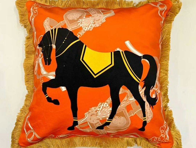 Наволочка для декоративной подушки LUX-31613 от Luxe-Crime представляет собой яркий акцент в интерьере, выполненный в стиле "этно" с элементами классики. Яркий оранжевый фон и стилизованное изображение черной лошади с золотыми элементами создают эффектное и запоминающееся оформление. Отделка золотой бахромой по краям придает изделию роскошный и завершенный вид.