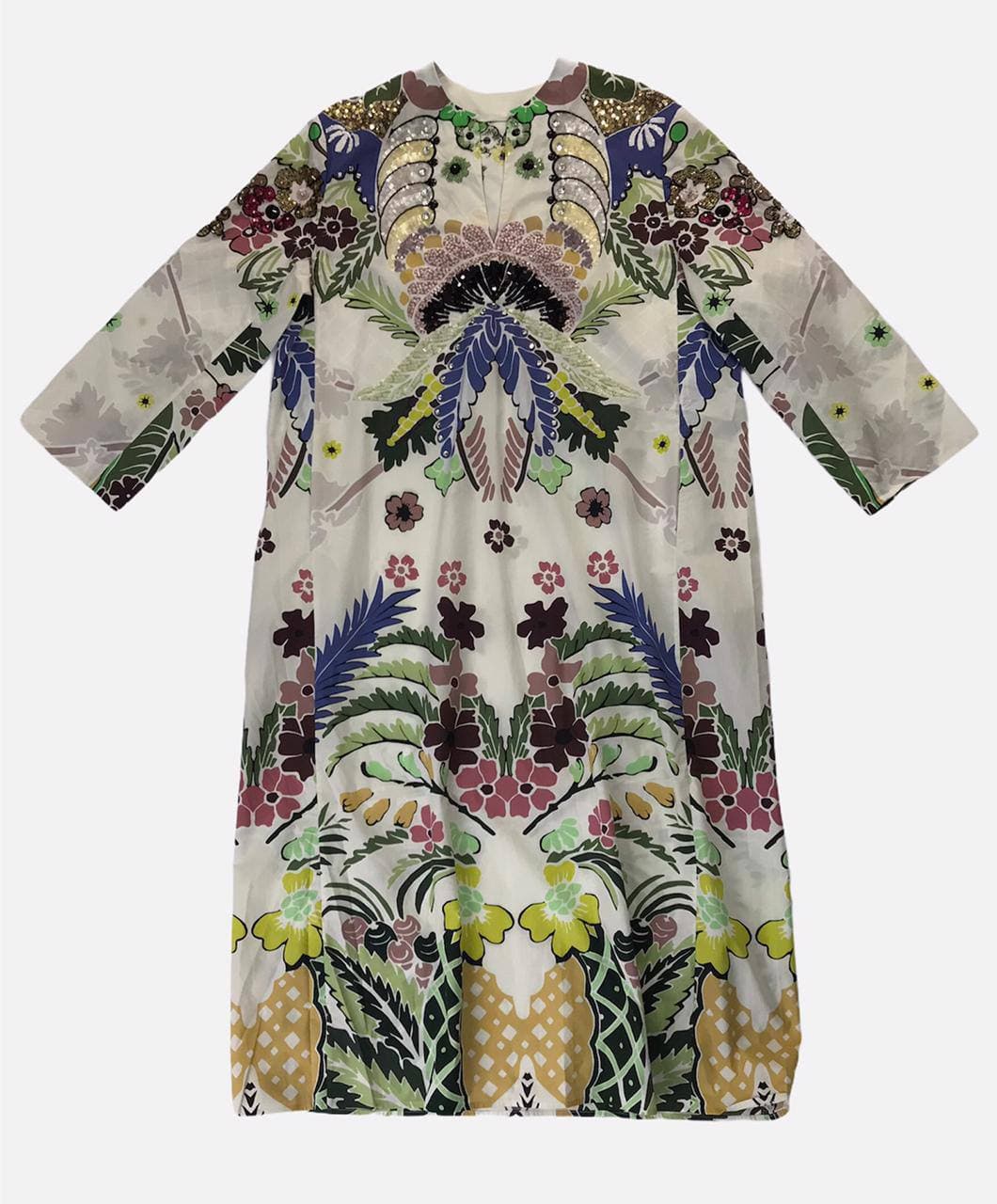 Это платье LUX-54001 от бренда LUXE-CRIME, выполненное в стиле кэжуал, идеально подойдет для тех, кто ценит оригинальность и комфорт. Яркий цветочный принт в сочетании с декоративными элементами придает изделию уникальность, а свободный крой обеспечивает свободу движений. Платье станет отличным выбором для повседневных прогулок или встреч с друзьями.