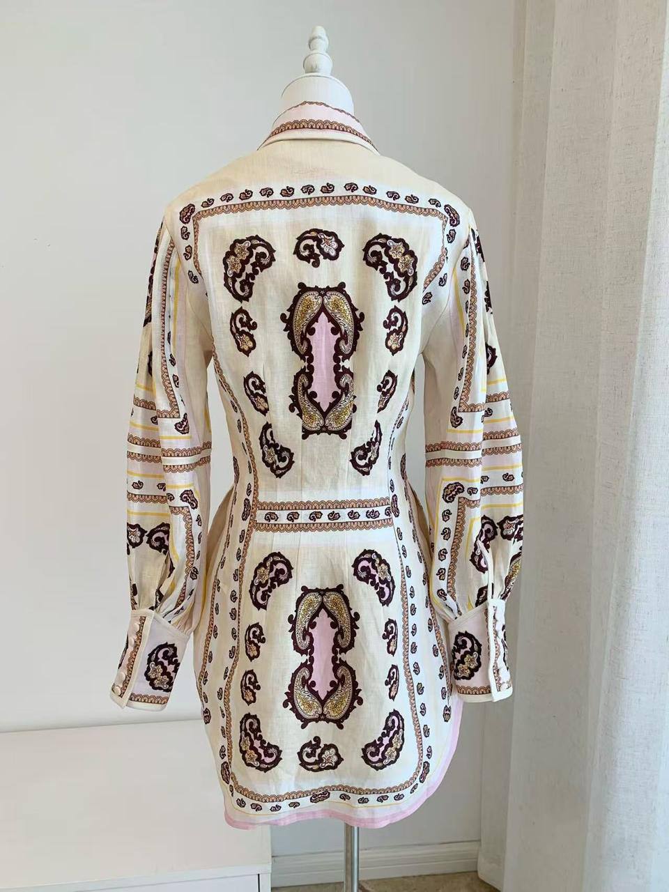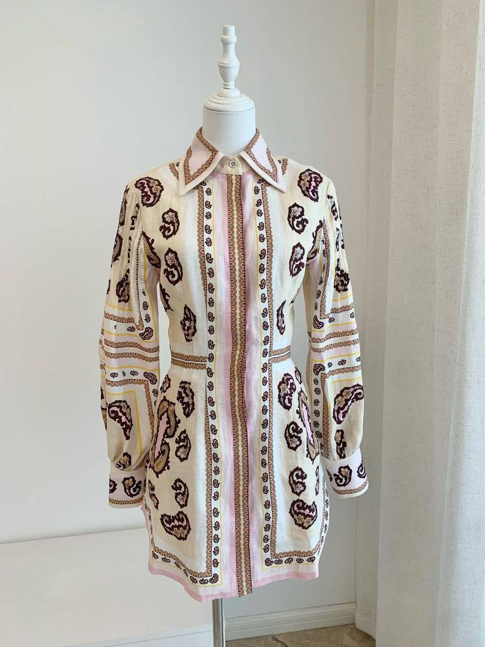 Платье Antipodean LUX-115960 - это элегантное платье рубашечного типа с длинными рукавами. Оно выполнено в кремовом цвете с узором пейсли и полосатыми вставками. Идеально подходит для создания стильного и женственного образа.