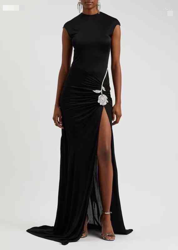 Платье David Koma, представленное под артикулом LUX-113451, — это элегантное черное платье в пол, выполненное в стильном дизайне. Платье имеет приталенный силуэт, драпировку на талии и высокий разрез на бедре, что придает ему изысканный и эффектный вид. Особенностью модели является декоративная деталь в виде цветка из кристаллов.