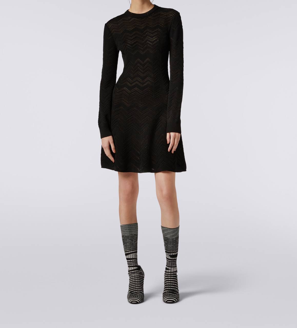 Платье Missoni LUX-97630 — элегантное и стильное платье, воплощающее фирменный стиль бренда. Платье выполнено в черном цвете с выразительным узором шеврон. Эта модель идеально подойдет для различных мероприятий, от повседневных встреч до вечерних выходов.