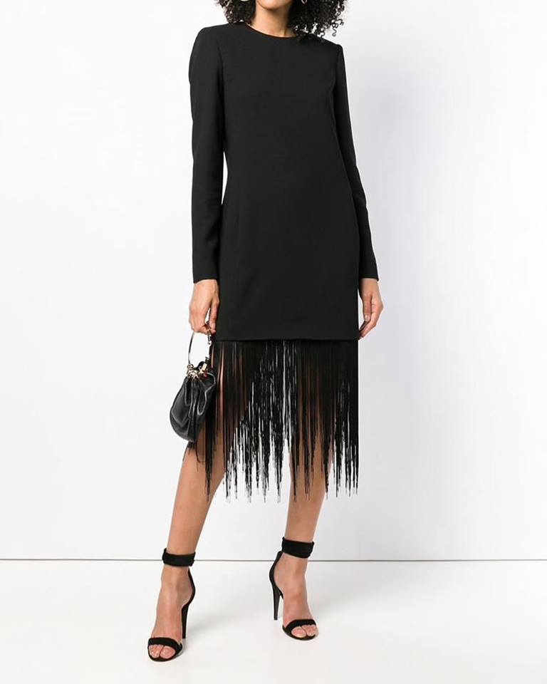Платье ОДЖ-1427 от бренда ODG — это элегантный и стильный выбор для создания эффектного образа. Крой платья выполнен в классическом стиле с длинными рукавами и круглым вырезом, однако его изюминкой является пышная бахрома по нижнему краю, придающая динамичность и шик. Этот наряд идеально подойдет для вечерних мероприятий, вечеринок или особого случая, где вы хотите выглядеть неотразимо.