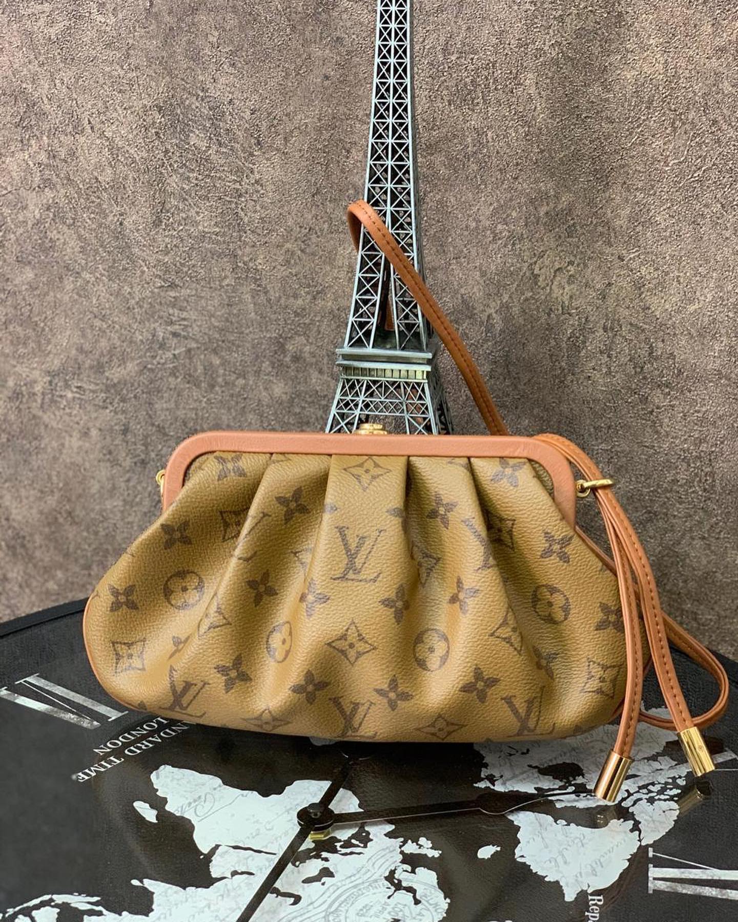Сумка женская Louis Vuitton LUX-42234 представляет собой элегантный аксессуар в стиле ретро, сочетающий узнаваемый монограммный принт с изысканными кожаными деталями. Эта модель идеально подойдет для создания утонченных вечерних и дневных образов.