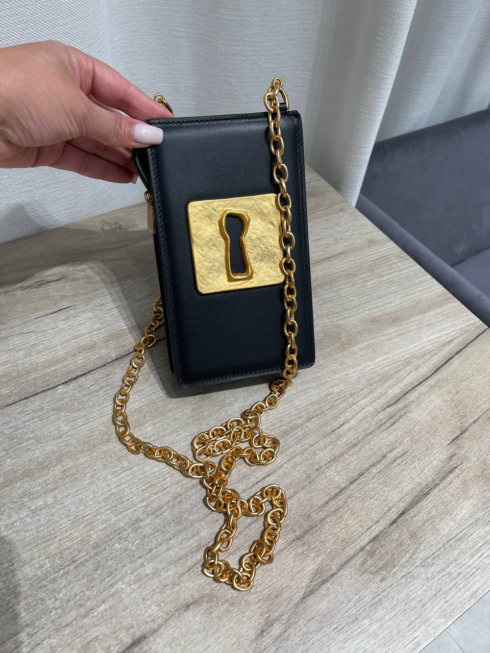 Элегантная сумочка под телефон Schiaparelli – это стильный аксессуар, который сочетает в себе функциональность и изысканный дизайн. Она станет отличным дополнением к вашему образу, позволяя всегда иметь под рукой самое необходимое.