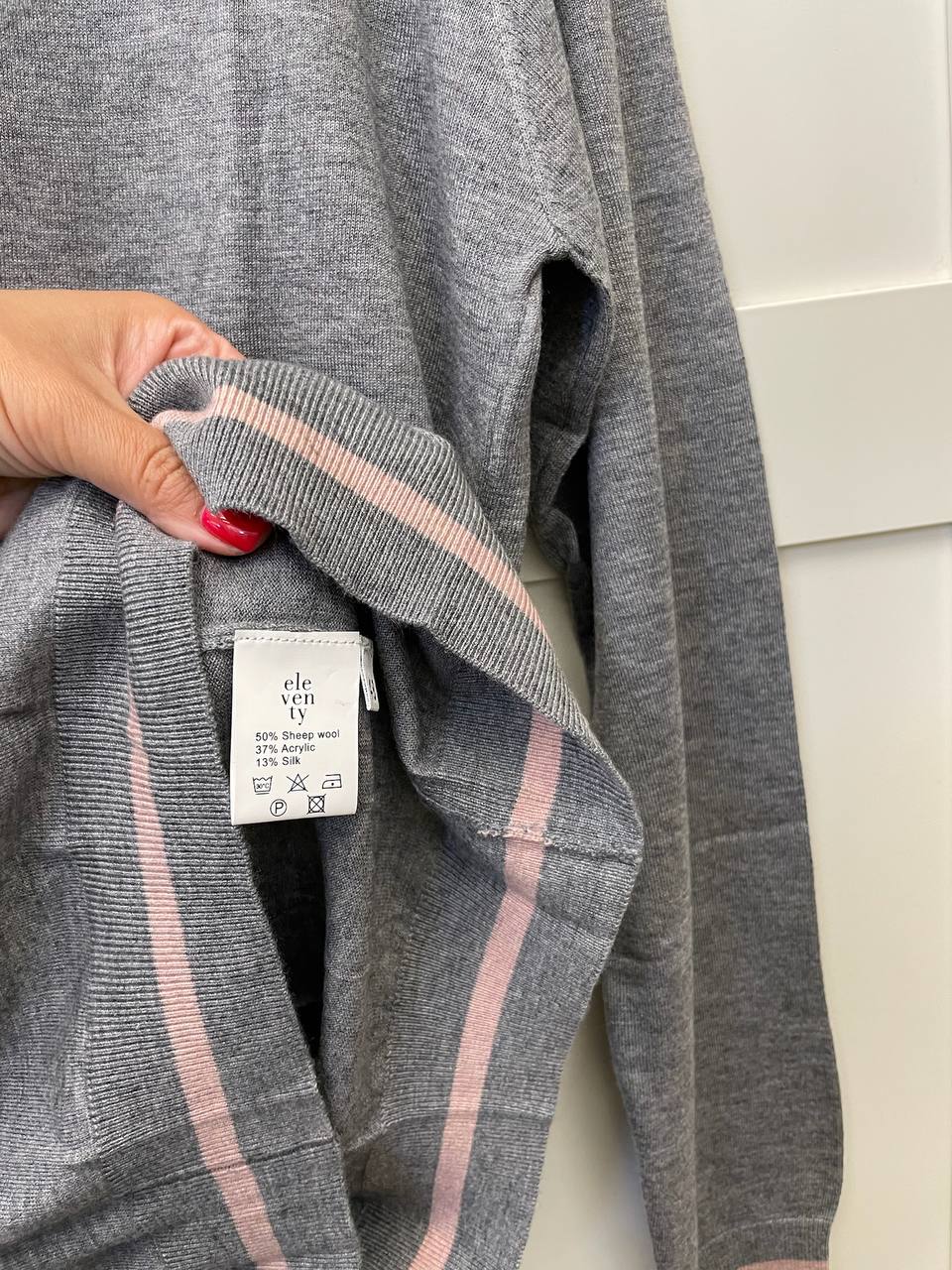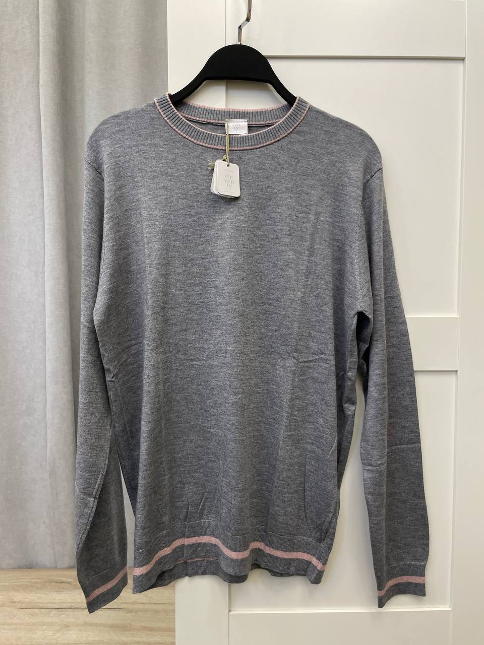 Свитер мужской LUX-110481 от бренда Eleven Paris — это воплощение элегантности и комфорта в повседневном гардеробе. Свитер выполнен в классическом стиле с круглым вырезом и длинными рукавами. Серый цвет изделия дополнен розовыми деталями на манжетах и воротнике, придающими ему изысканный вид.