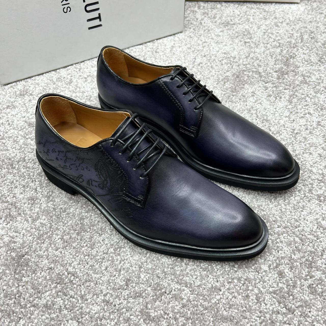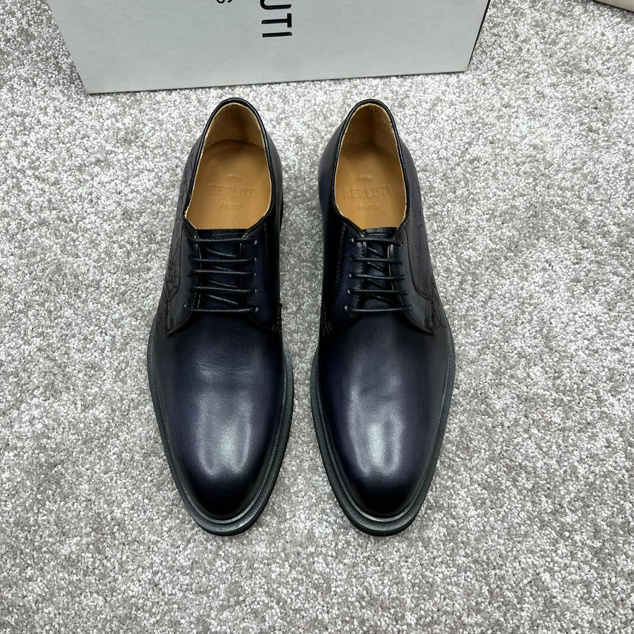 Туфли Berluti LUX-88306 - это элегантная модель в классическом стиле. Темно-синий цвет и гладкая текстура кожи придают обуви изысканный вид. Эти туфли идеально подойдут для деловых встреч или особых случаев.