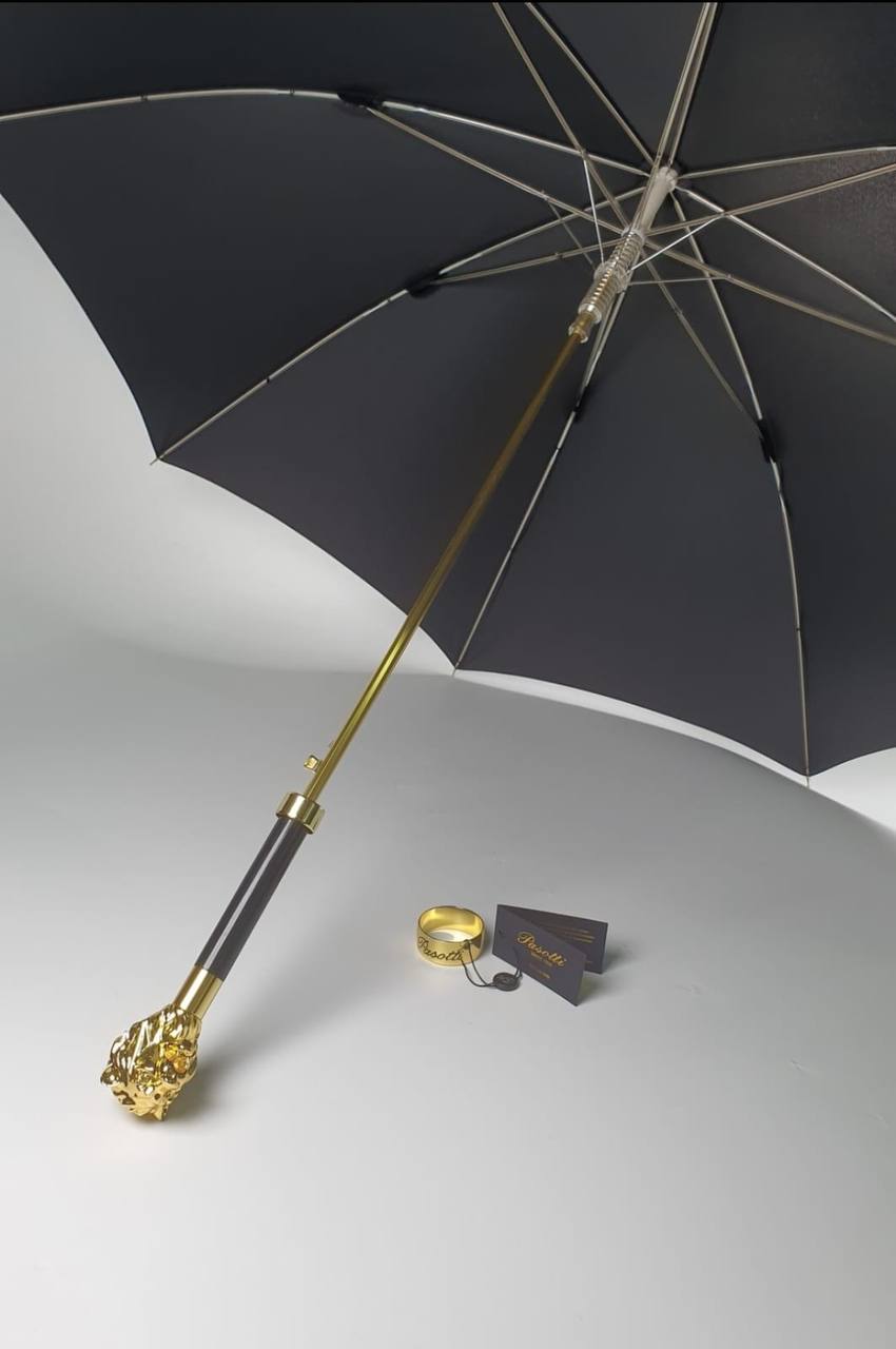 Зонт LUX-82389 от Pasotti – это воплощение элегантности и стиля. Чёрный купол в сочетании с изысканной золотой фурнитурой создает неповторимый образ. Зонт станет прекрасным дополнением к любому образу и надёжно защитит от непогоды.