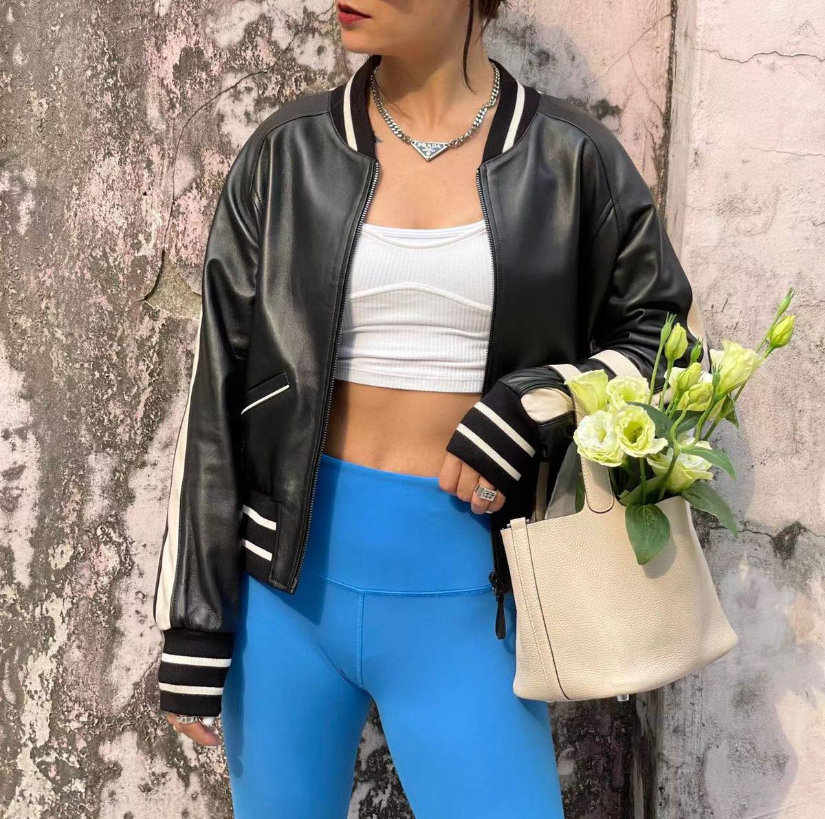Бомбер Acne LUX-66602 — это стильная модель, сочетающая в себе классический силуэт бомбера с современными деталями. Куртка выполнена в черном цвете с контрастными белыми полосами на рукавах и воротнике, придавая образу динамичность. Она идеально подходит для создания расслабленных, но элегантных образов в стиле casual.