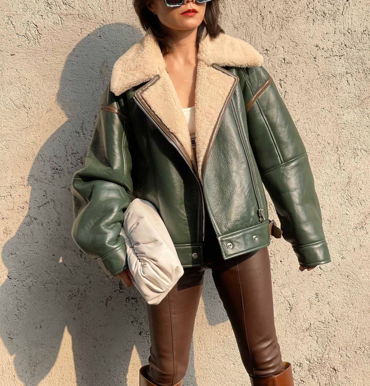 Дубленка Acne LUX-112098 — это стильная верхняя одежда, выполненная в авиаторском стиле. Зеленый цвет и текстура изделия придают ему современный и выразительный вид. Этот предмет гардероба идеально подойдет для создания модных образов в холодное время года.