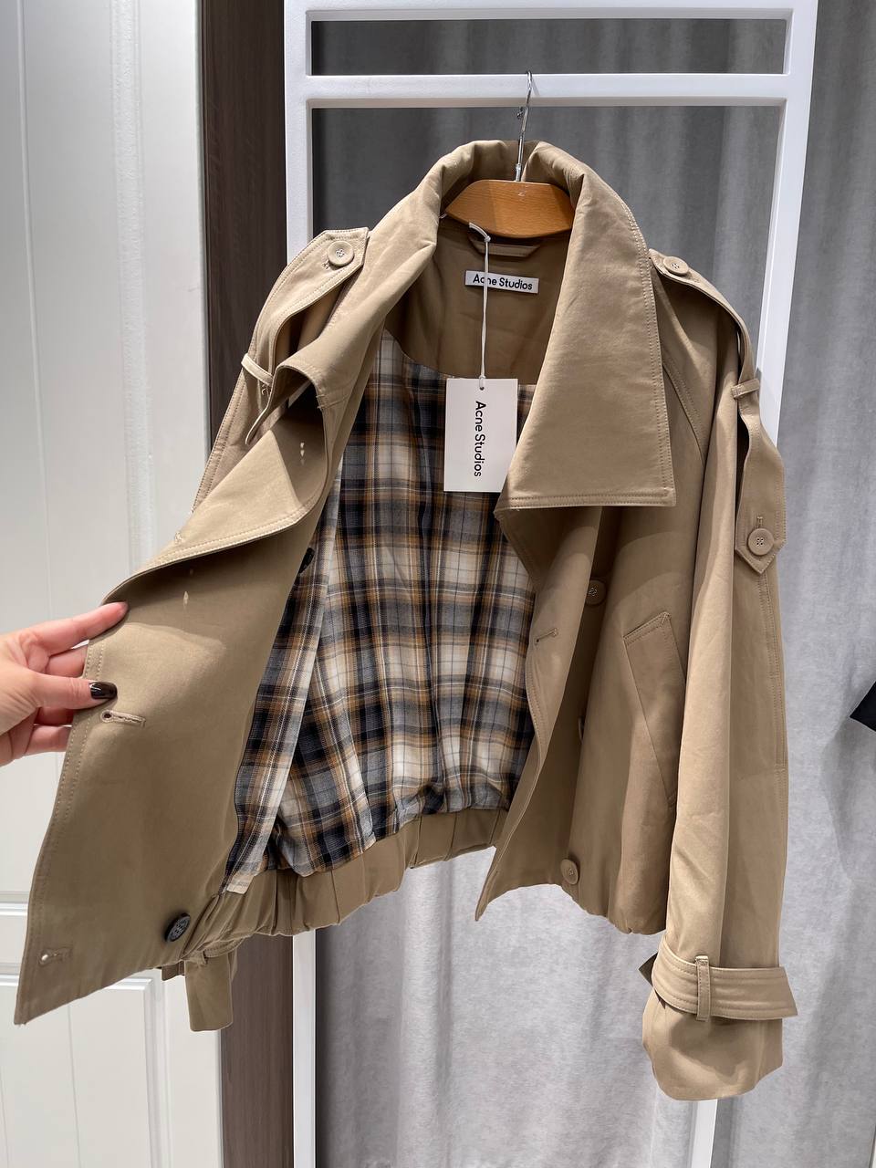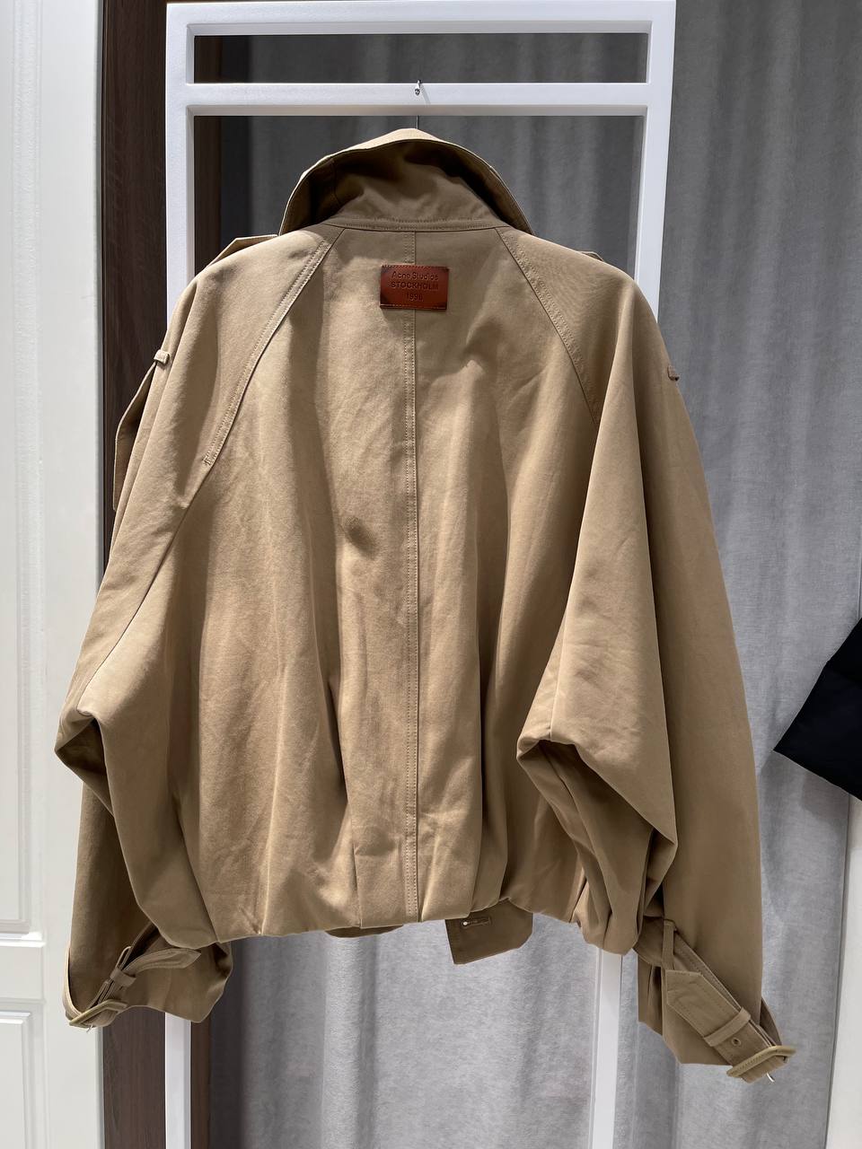 Acne LUX-125464 — стильная женская куртка, сочетающая в себе элементы классического тренча и современной куртки-бомбера. Её отличает укороченный силуэт и объёмные рукава, что делает её интересным акцентом в любом образе.