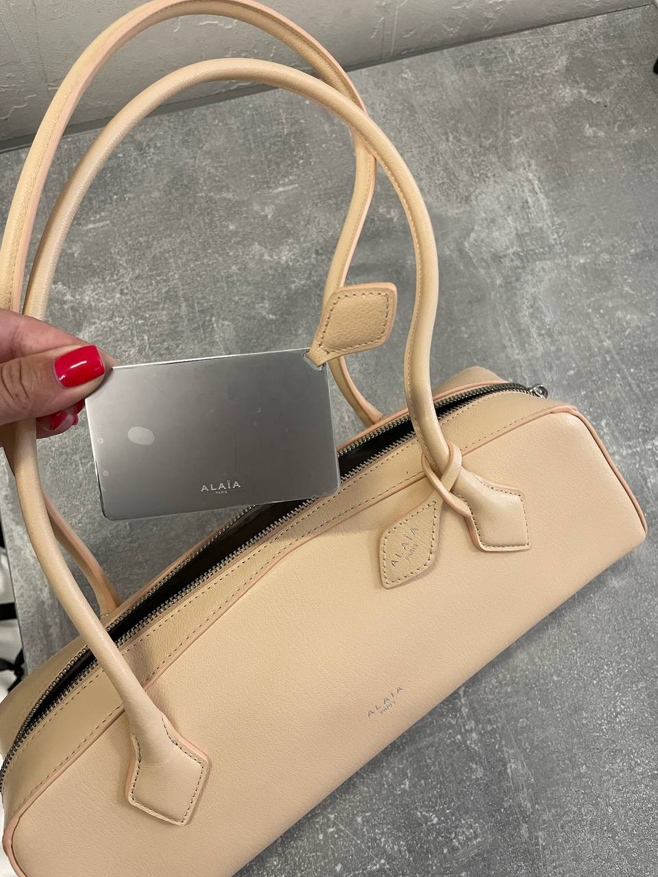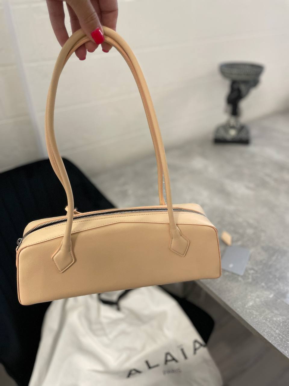 Сумка женская Alaia LUX-110566 — это элегантная сумка прямоугольной формы, выполненная в нежном бежевом цвете. Сумка имеет лаконичный дизайн и тонкие ручки, что делает ее идеальным аксессуаром для создания изысканных образов. Она подойдет как для повседневного использования, так и для особых случаев.