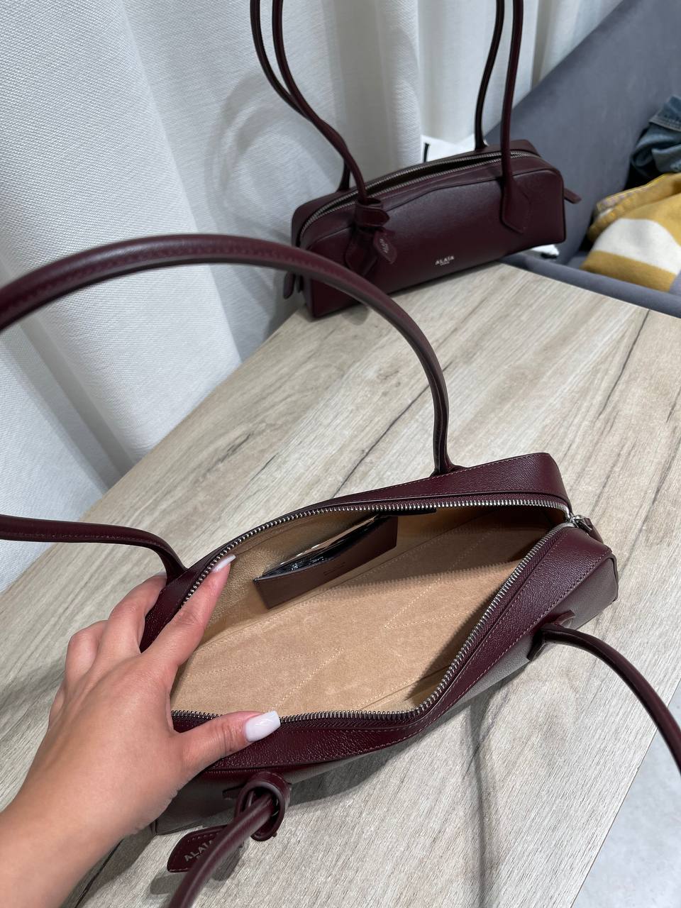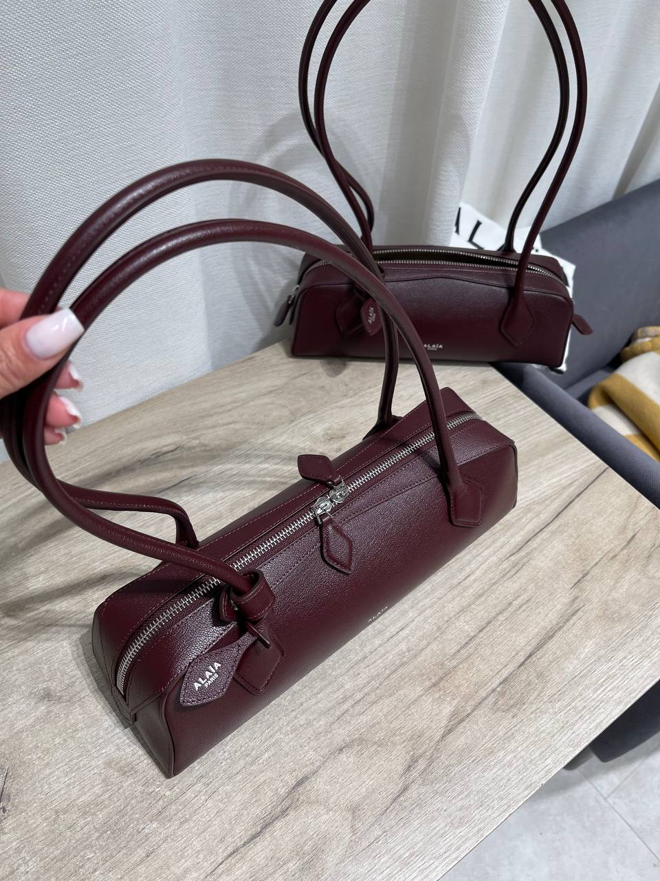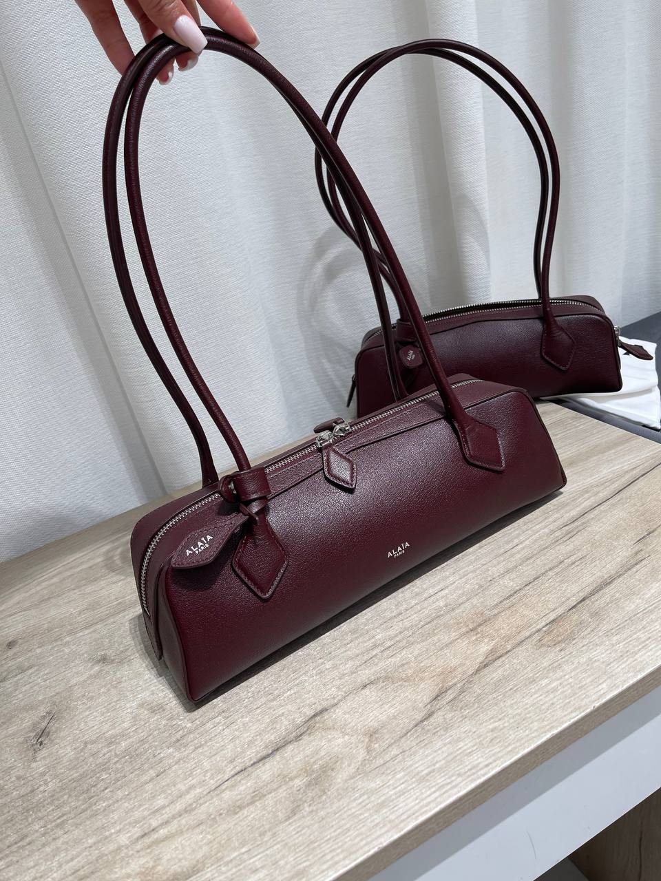 Стильная женская сумка Alaia — это элегантный аксессуар, который подчеркнет изысканный вкус своей обладательницы. Сумка выполнена в лаконичном дизайне и глубоком винном оттенке.