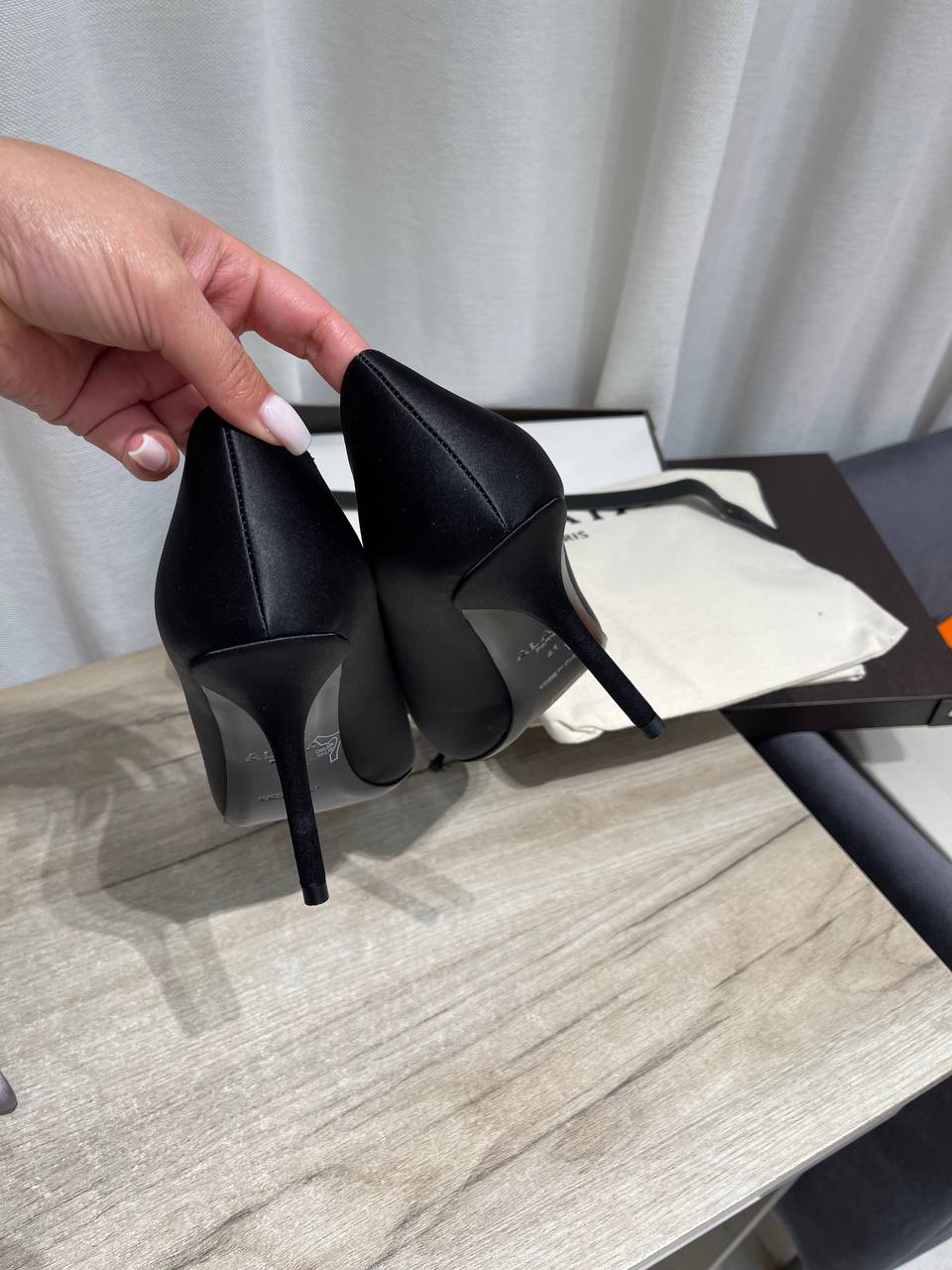 Эти элегантные туфли от Alaia – воплощение изысканного стиля и женственности. Классический силуэт с заостренным носком и тонким каблуком делает их идеальным выбором для особых случаев и вечерних выходов.