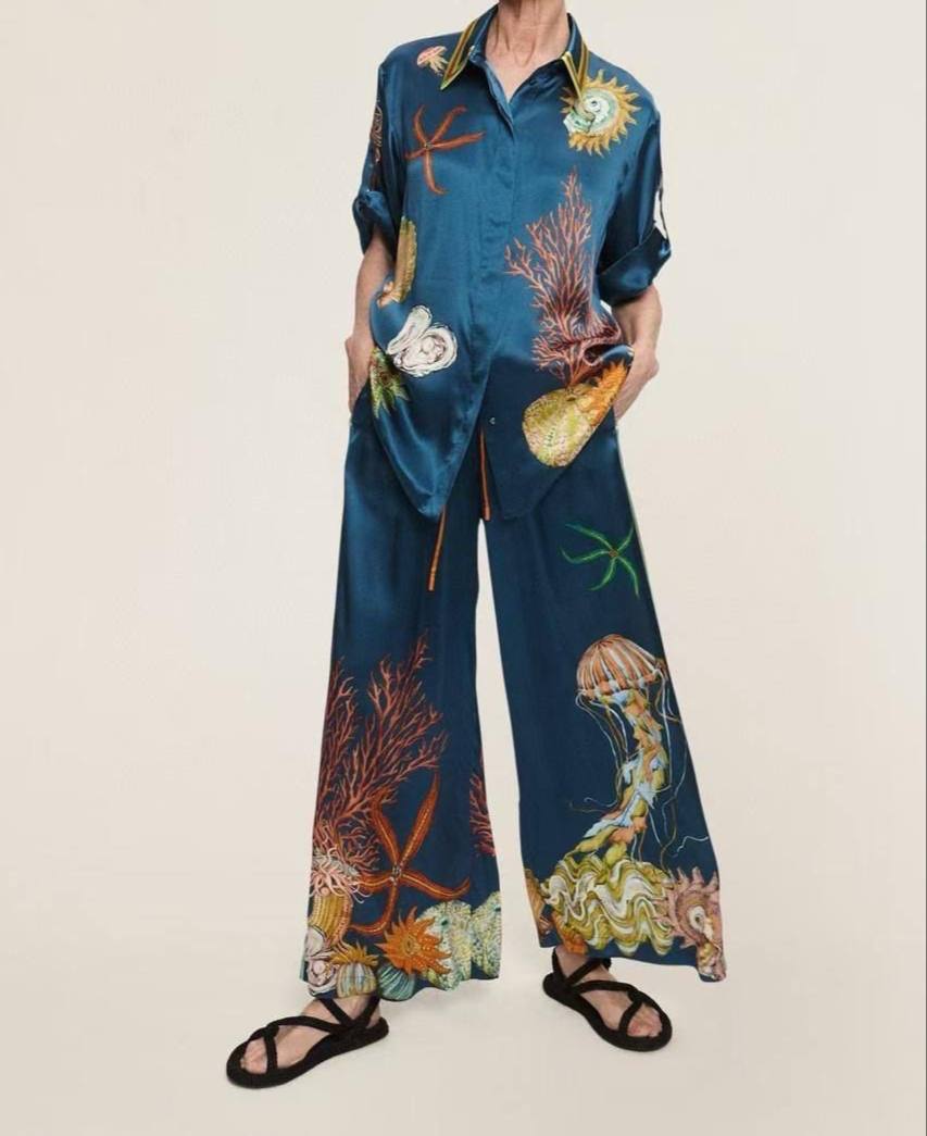 Костюм Alemais LUX-119189 — это стильный комплект в ярком дизайне. Он выполнен в насыщенном синем цвете с красочными морскими принтами. Костюм сочетает в себе элегантность и удобство, подходя для различных образов.