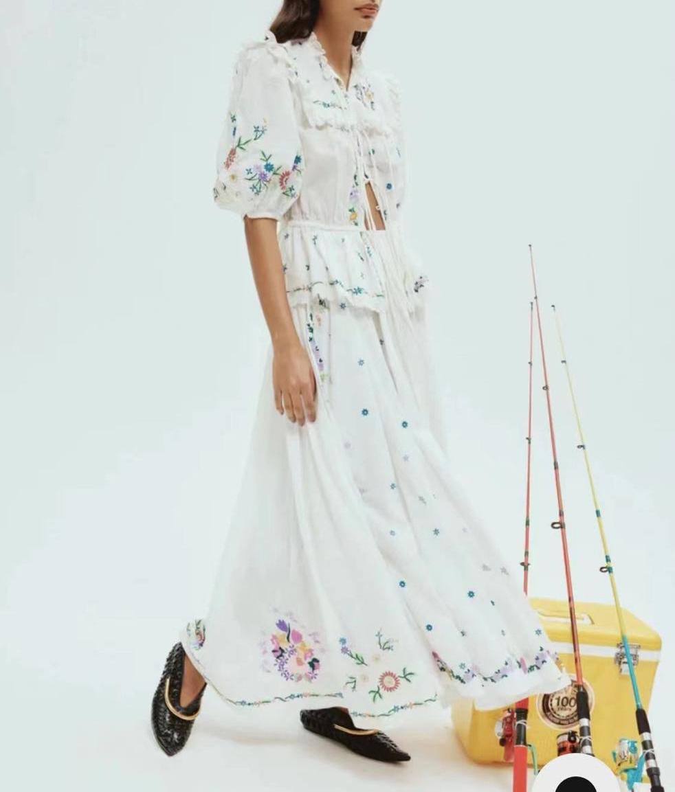 Костюм женский Alemais LUX-107671 представляет собой элегантный наряд в стиле бохо-шик, выполненный в белом цвете с яркой цветочной вышивкой. Этот костюм идеально подойдет для летних прогулок и особых случаев.