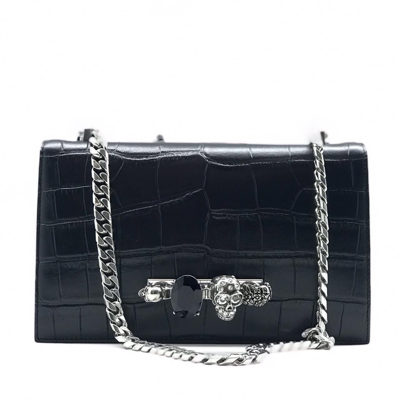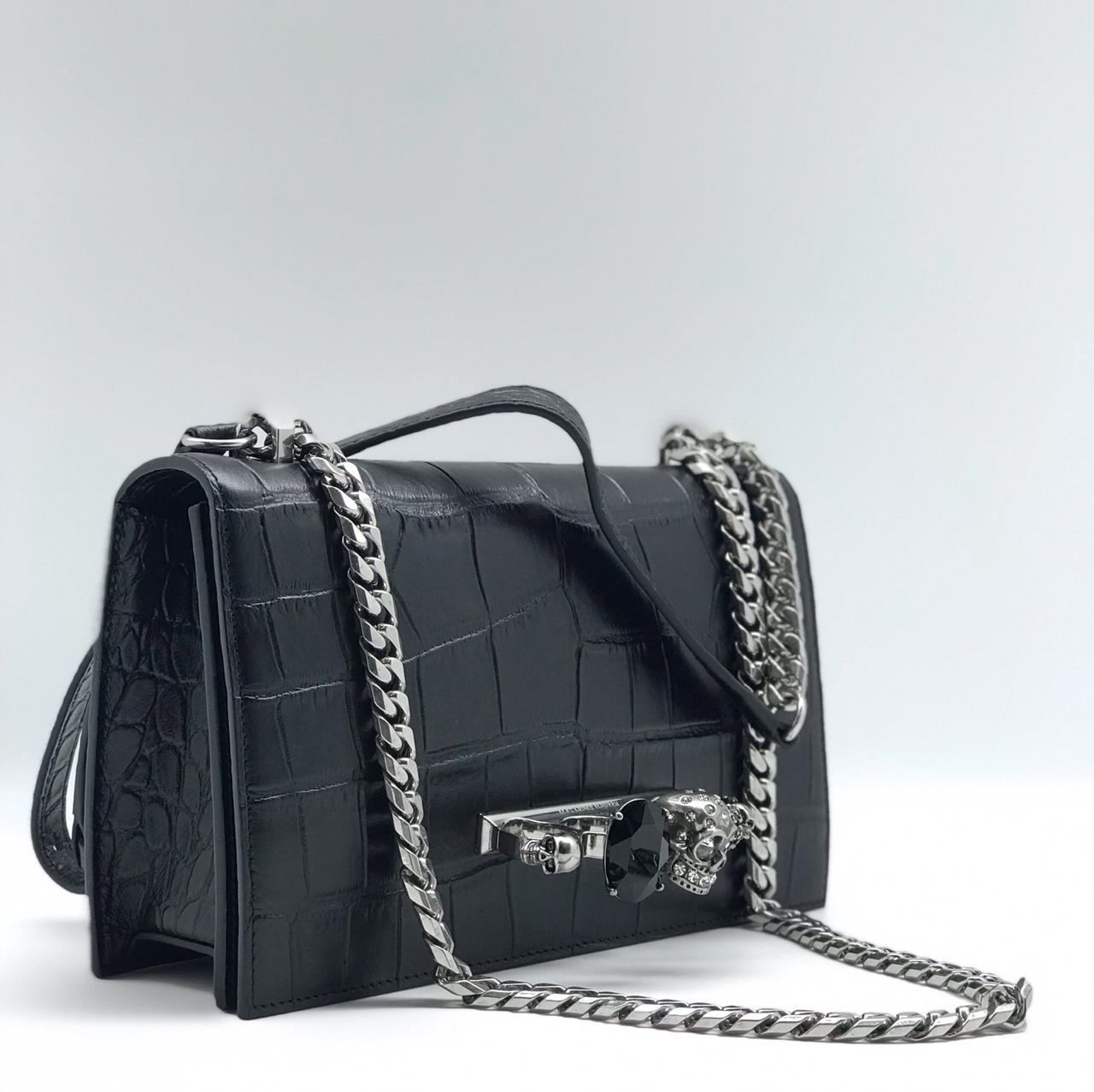 Сумка женская Alexander McQueen LUX-10700 – это элегантный аксессуар, выполненный в культовом стиле бренда. Черная кожа с тиснением под крокодила придает изделию роскошный вид, а узнаваемый мотив с черепами добавляет характера. Эта сумка станет эффектным дополнением к вечернему или городскому образу, подчеркивая индивидуальность владелицы.