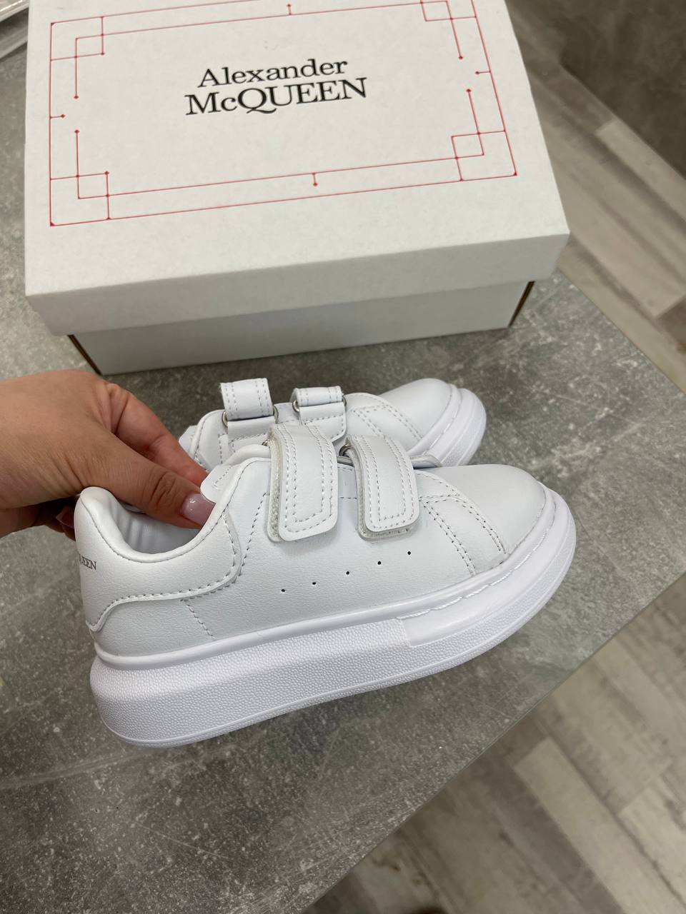 Кеды Alexander McQueen LUX-105559 — это стильные детские кеды в минималистичном дизайне. Они выполнены в белом цвете, с двумя ремешками на липучках, что делает их удобными в использовании. Толстая подошва обеспечивает дополнительный комфорт при носке.