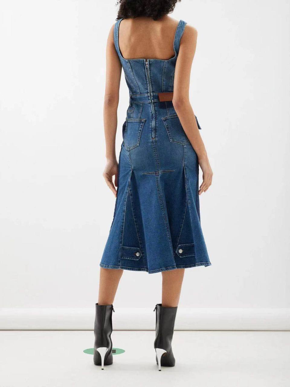 Сарафан Alexander McQueen LUX-105672 — это стильное воплощение современной элегантности. Джинсовый сарафан с лифом-бюстье, широкими лямками и высокой талией, подчеркнутой поясом, дополнен классическим разрезом на юбке. Его дизайн сочетает в себе смелость и женственность, идеально подходя для создания запоминающихся образов.