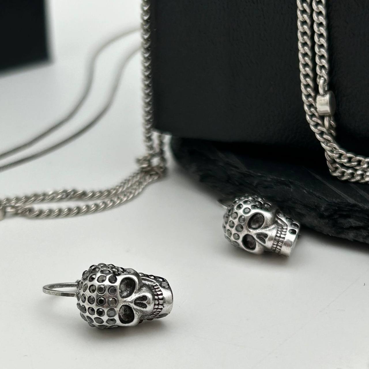 Серьги Alexander McQueen LUX-110612 — это стильный аксессуар, выполненный в узнаваемом готическом стиле. Серьги выполнены в виде черепов, декорированы мелкими деталями. Серебряный цвет и сложная текстура придают им выразительность.