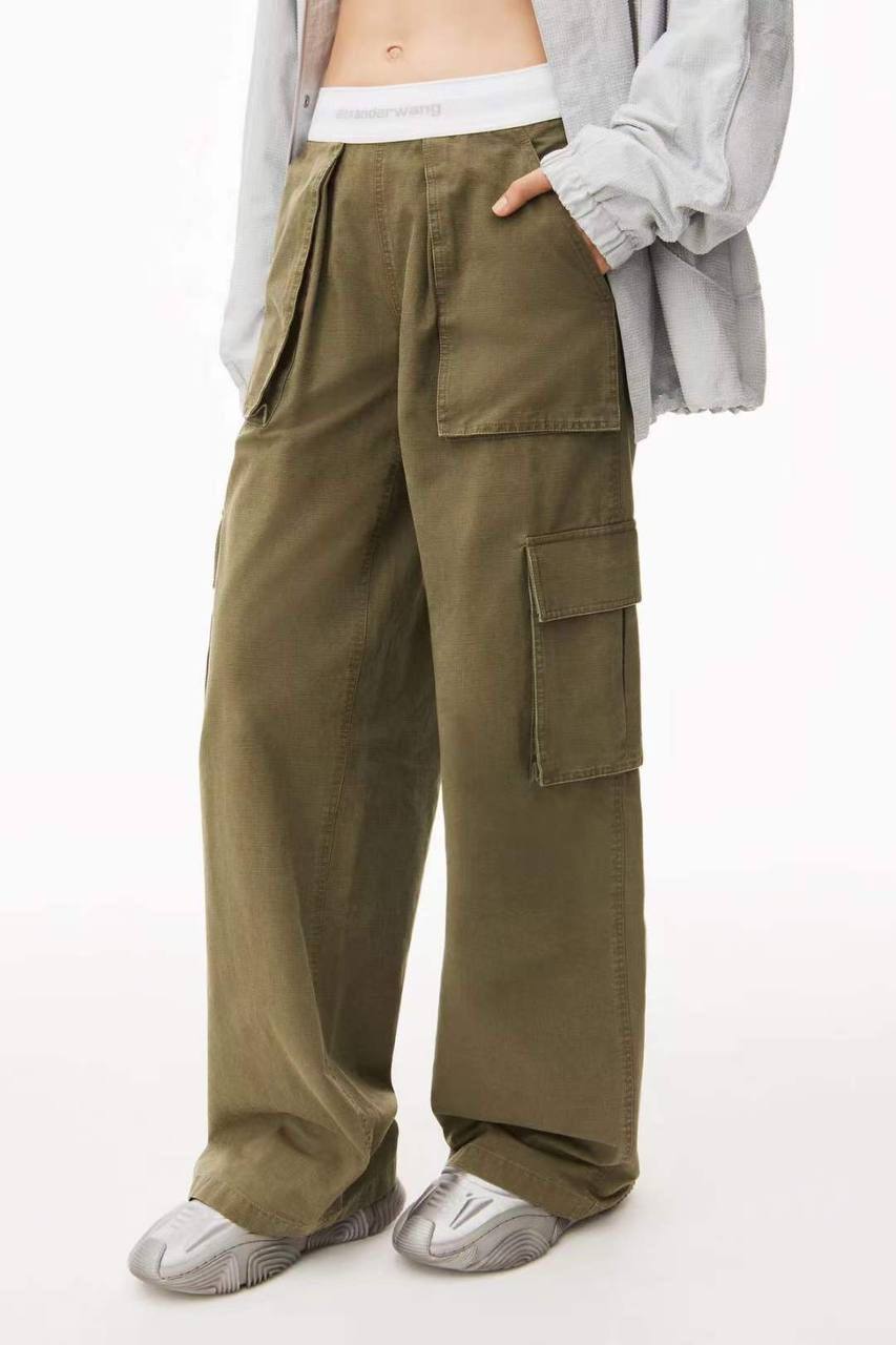 Брюки Alexander Wang (артикул LUX-93292) представляют собой стильную модель карго в оливковом цвете. Эти брюки, обладающие широким кроем, отлично подойдут для создания как повседневных, так и более формальных образов.