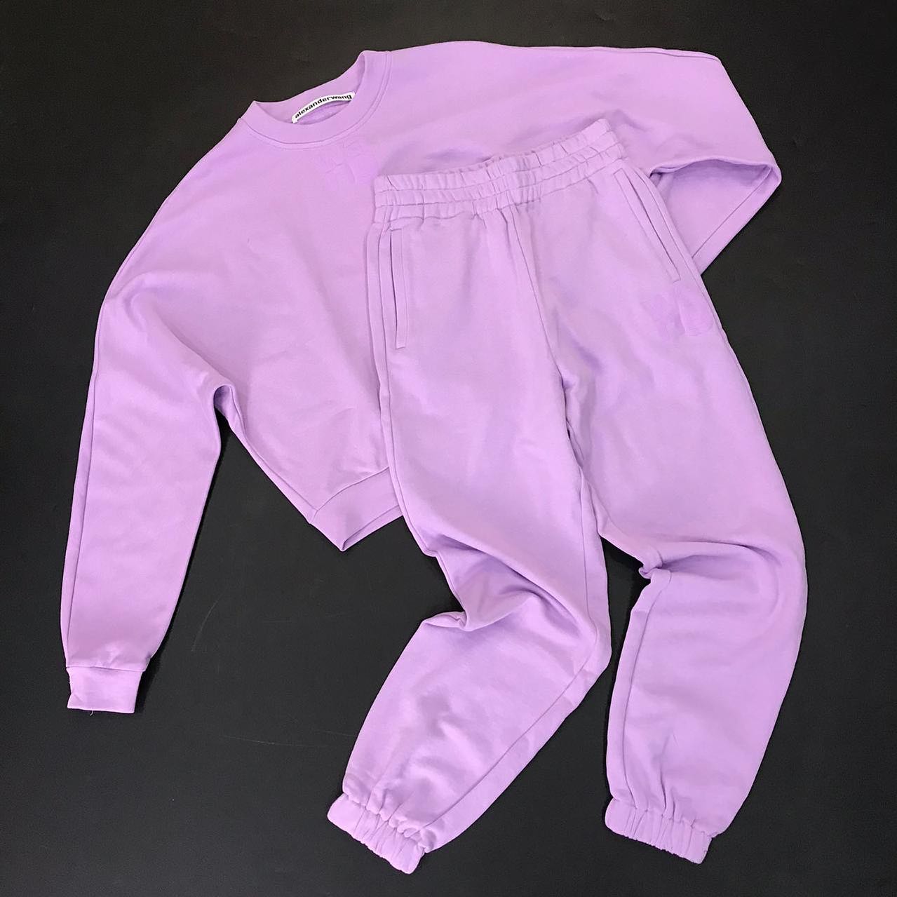 Спортивный костюм Alexander Wang LUX-33777 представлен в нежном лавандовом оттенке, идеально сочетающем стиль и комфорт. Комплект состоит из укороченного свитшота и свободных брюк-джоггеров, выполненных в единой цветовой гамме. Этот костюм станет отличным выбором для создания расслабленных, но при этом модных образов.