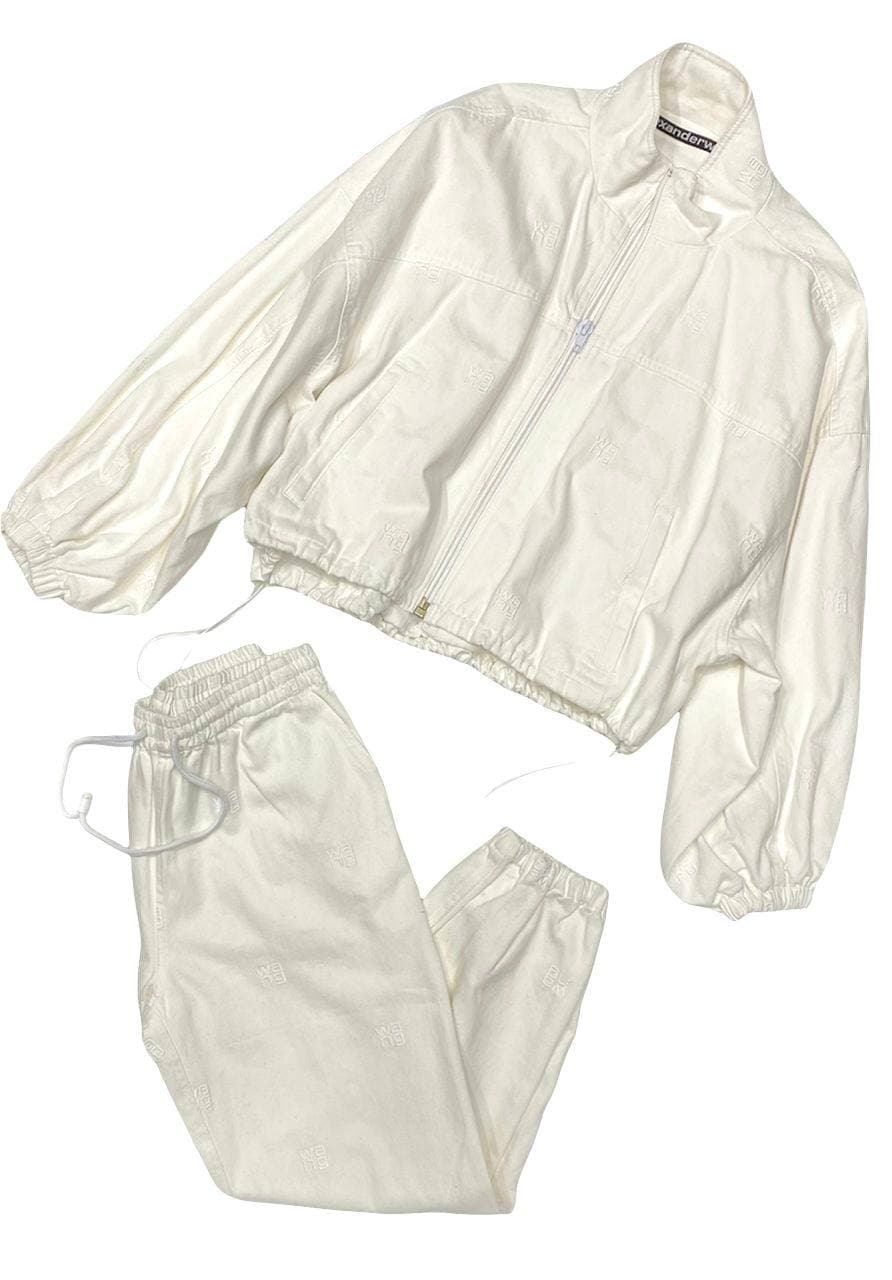 Этот спортивный костюм Alexander Wang LUX-63760 выполнен в современном городском стиле, идеально подходящем для создания расслабленных, но стильных образов. Комплект состоит из куртки и брюк, оба предмета украшены монограммой бренда, что придает ему узнаваемость и элегантность. Лаконичный дизайн и нейтральный цвет делают его универсальным элементом гардероба.