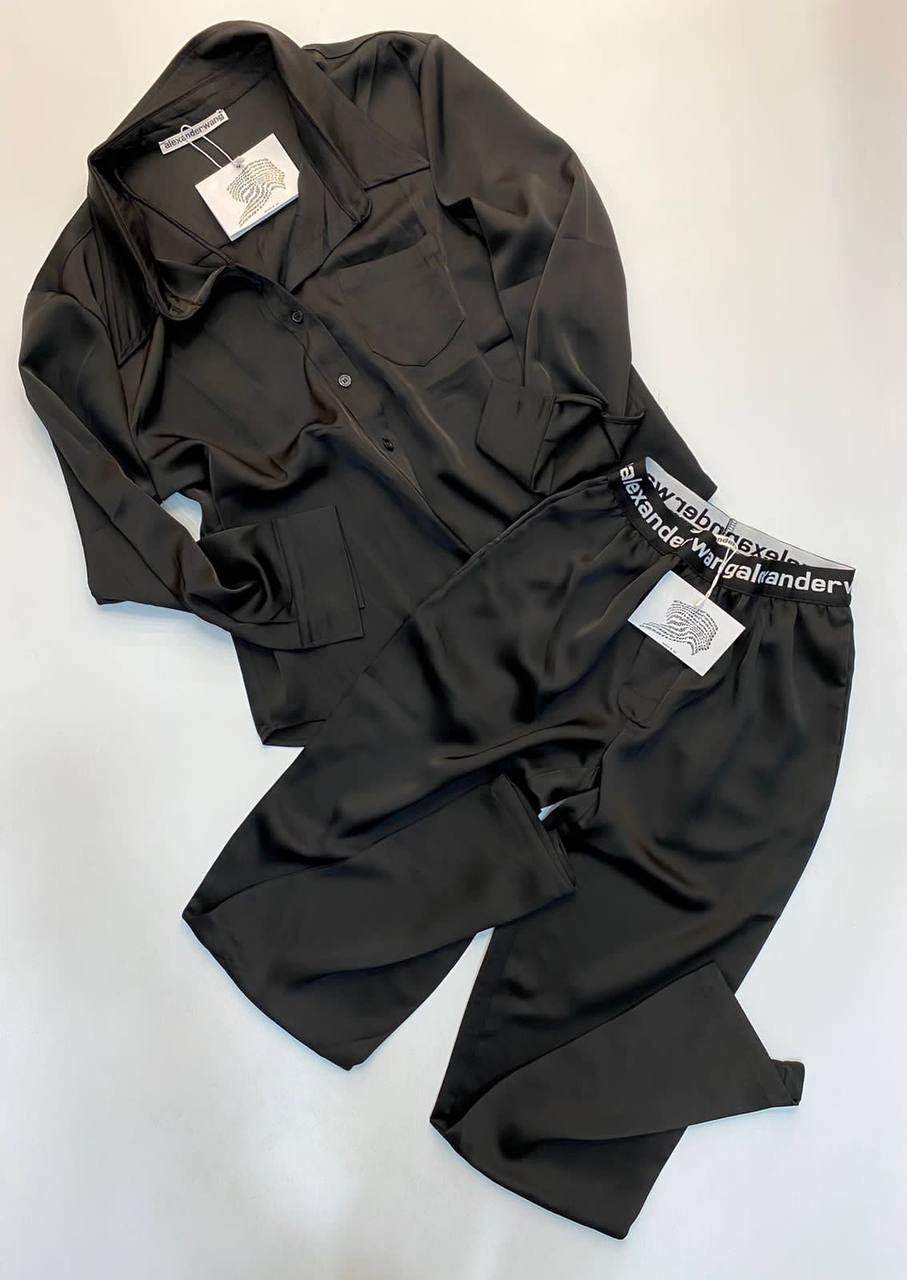 Этот женский костюм Alexander Wang LUX-66591 воплощает современный стиль и роскошь. Комплект, состоящий из рубашки с длинным рукавом и брюк, выполнен в элегантном черном цвете. Мягкая, струящаяся ткань создает эффектный внешний вид, а минималистичный дизайн подчеркивает фирменное чувство стиля бренда Alexander Wang.
