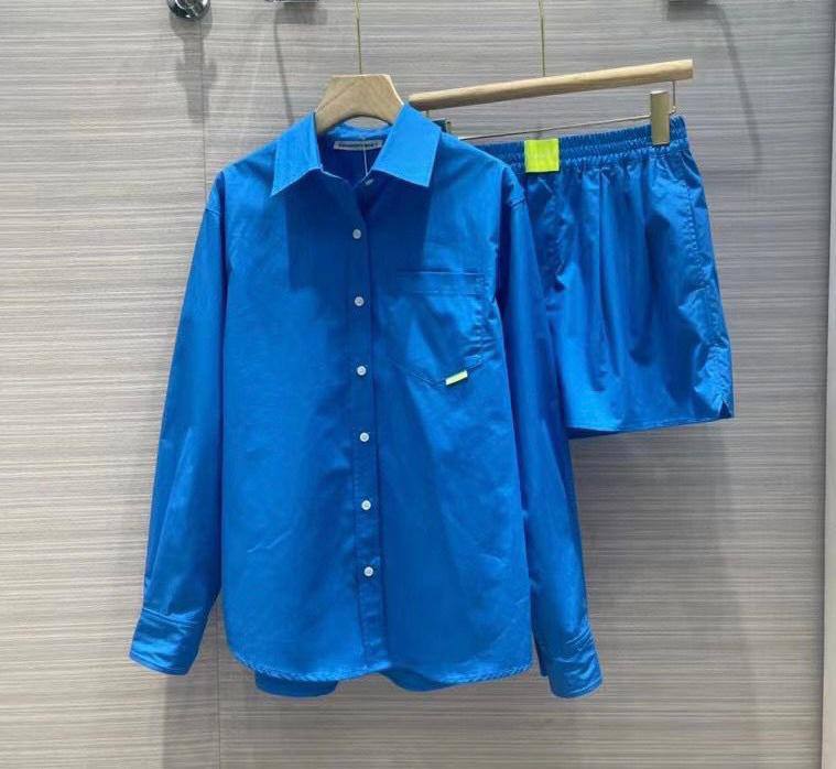 Этот женский костюм Alexander Wang LUX-66765 представляет собой стильный и современный комплект, состоящий из рубашки и шорт. Насыщенный синий цвет и свободный крой придают образу непринужденность, делая его идеальным для повседневных выходов или отдыха. Детали, такие как нагрудный карман на рубашке и эластичный пояс на шортах, добавляют функциональности и комфорта.