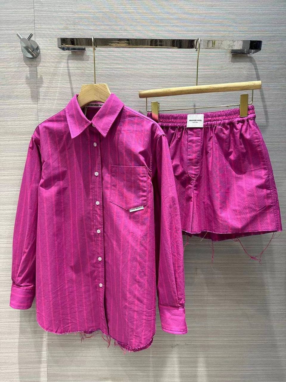 Костюм женский Alexander Wang LUX-88398 представляет собой стильный комплект, состоящий из рубашки и шорт. Яркий фуксиевый цвет и полосатый принт придают костюму современный вид. Этот комплект идеально подходит для создания модных повседневных образов.