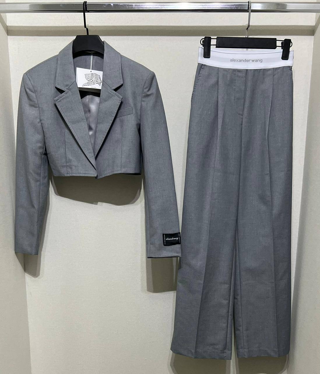 Костюм женский Alexander Wang LUX-115695 - это стильный костюм, представленный в классическом сером цвете. Он включает в себя укороченный пиджак и широкие брюки. Костюм идеально подойдет для создания элегантного и современного образа.