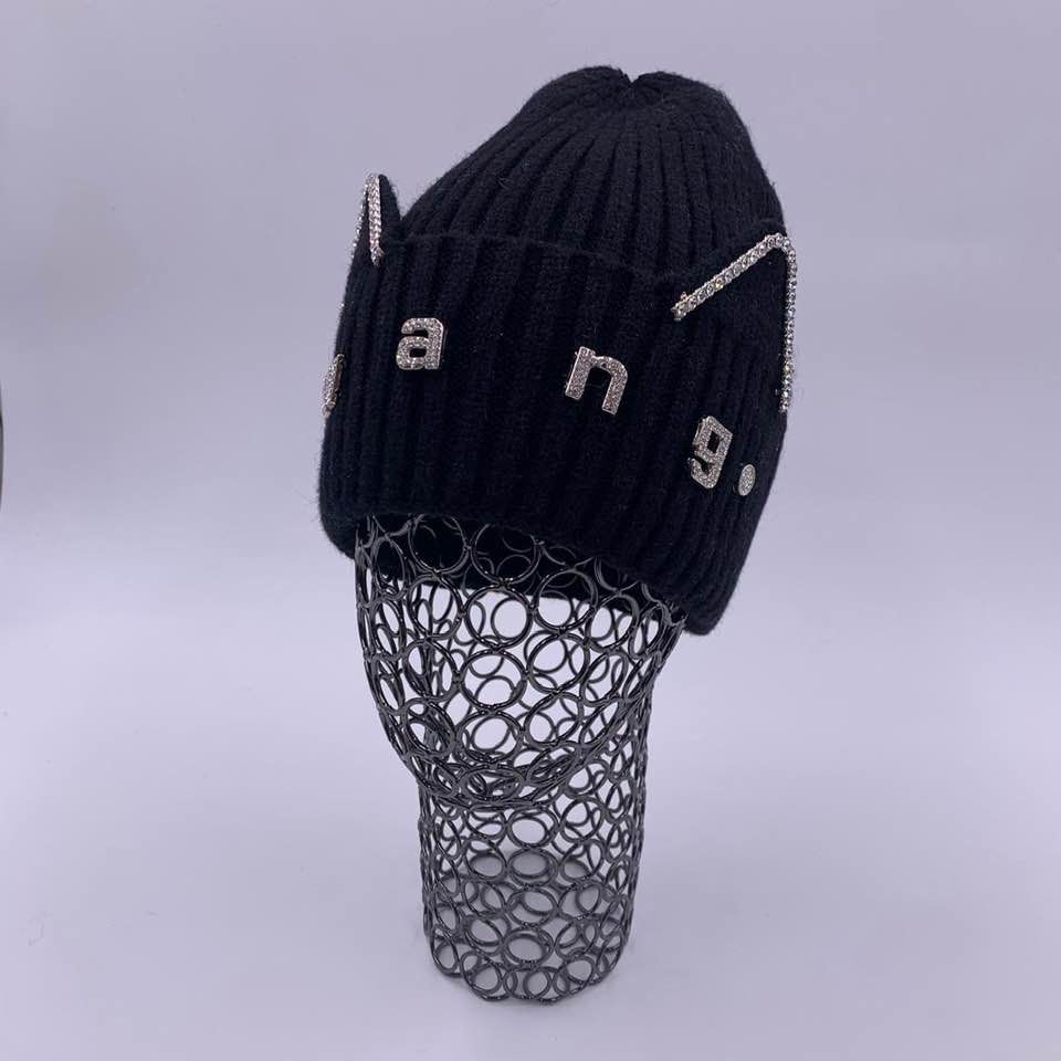 Шапка Alexander Wang LUX-38441 – стильный и оригинальный аксессуар, который добавит индивидуальности вашему образу. Данная модель выполнена в черном цвете и украшена объемными буквами, образующими название бренда, а также декором в виде ушек и стразов, придавая ей игривый и модный вид.