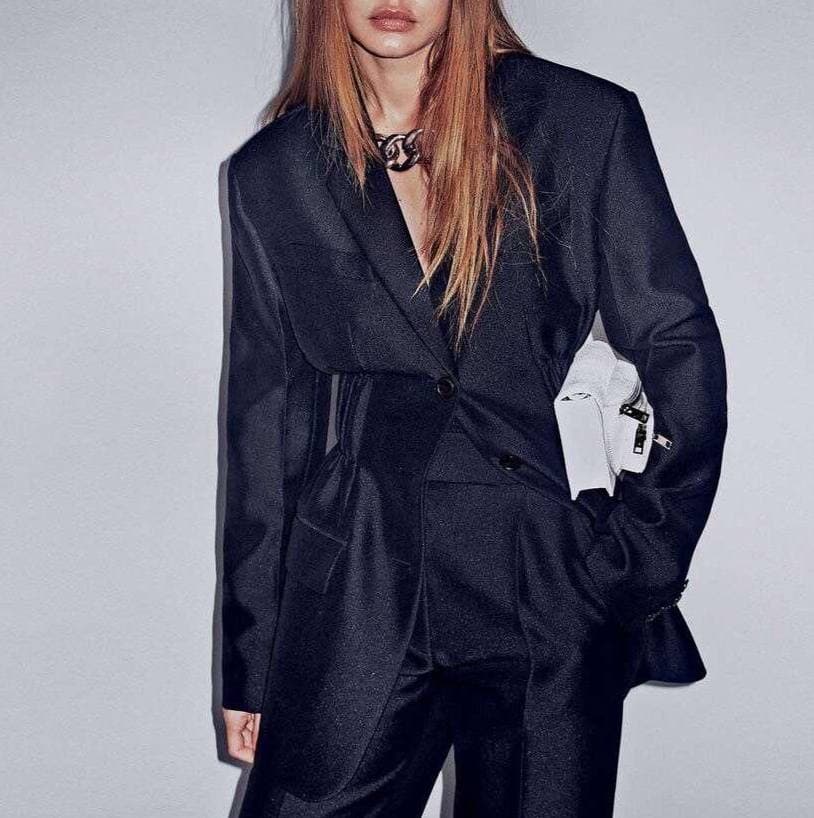 Элегантный жакет Alexander Wang LUX-64115, представленный в глубоком темно-синем цвете, воплощает современный стиль и изысканность. Этот предмет одежды идеально подходит для создания как деловых, так и более расслабленных образов. Дизайн жакета подчеркивает женственность благодаря приталенному силуэту и деталям, которые придают ему особую привлекательность.