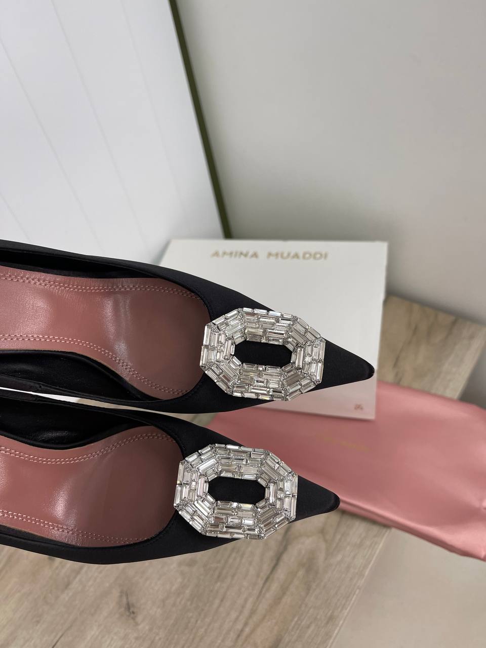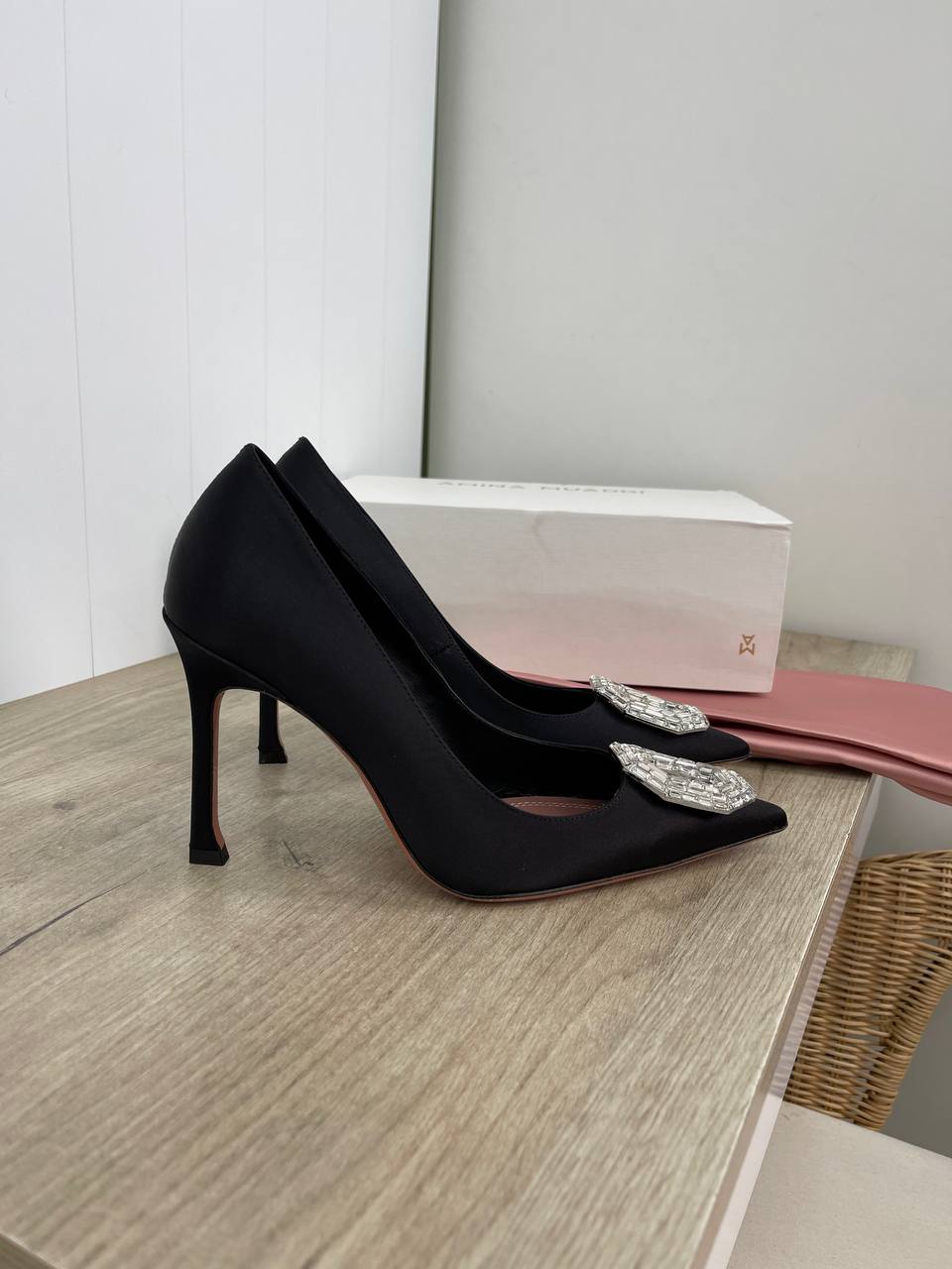 Туфли Amina Muaddi LUX-89121 — это элегантные женские туфли в классическом стиле. Модель выполнена в черном цвете с атласной текстурой. Туфли предназначены для создания стильных и изысканных образов.