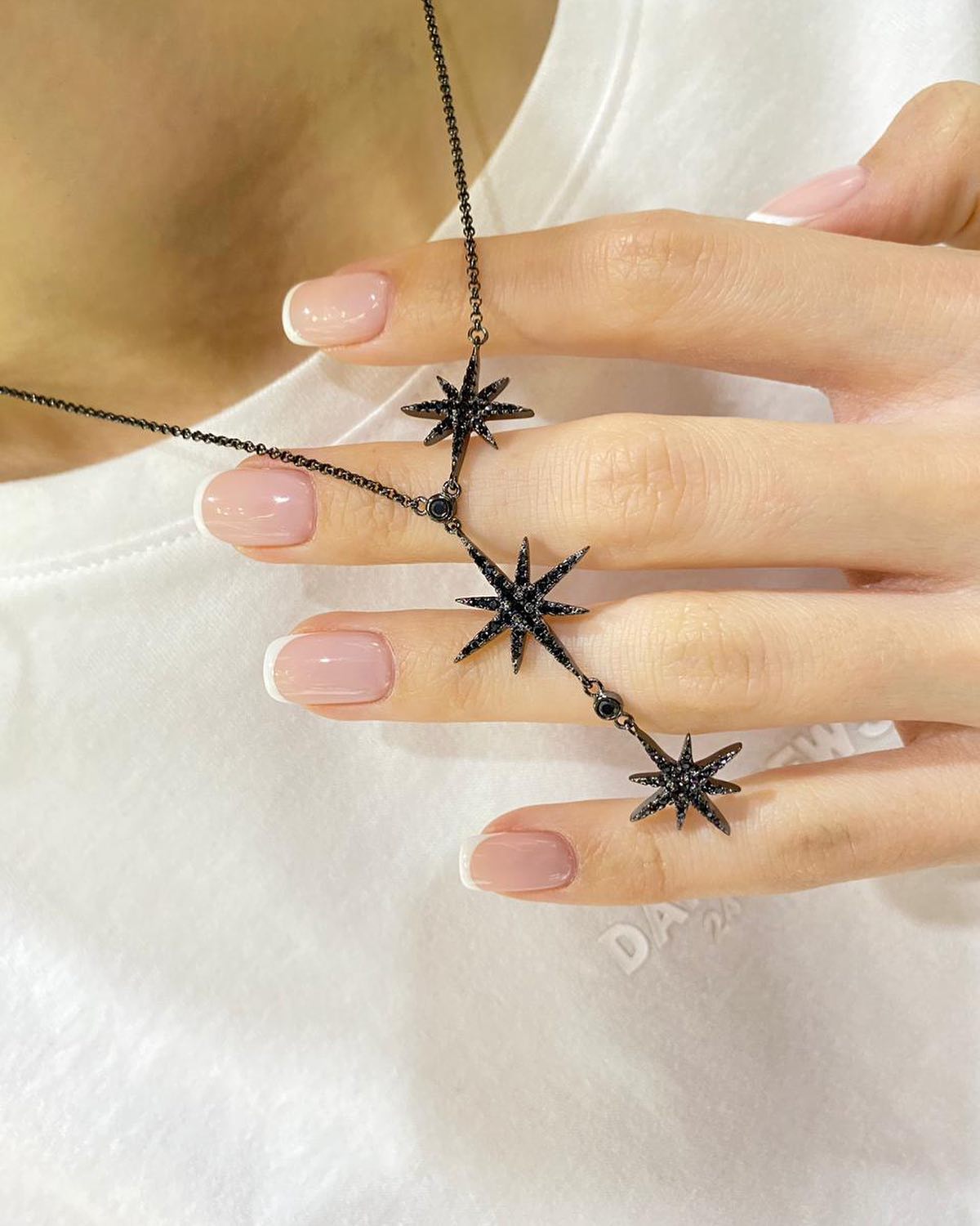 Колье APM Monaco LUX-46200 – это изысканное украшение, выполненное в современном стиле. Дизайн колье вдохновлен звездным небом, представляя собой подвеску с тремя мерцающими звездами, украшенными черными цирконами. Это стильное колье идеально дополнит как повседневный, так и вечерний образ, придавая ему нотку элегантности и сияния.