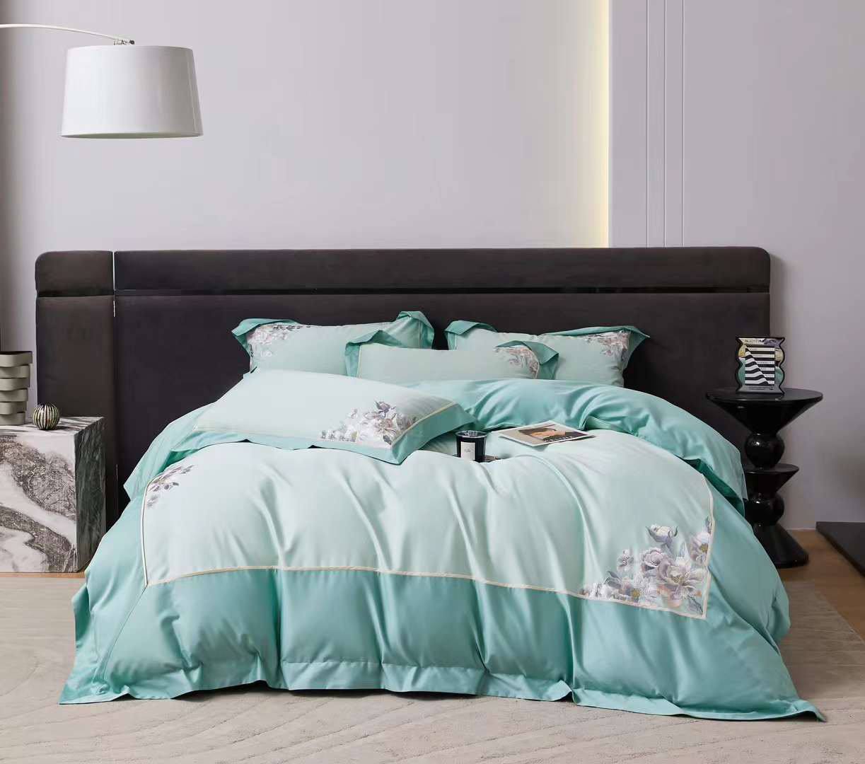 Комплект постельного белья APPOLO LUX-104242 — это элегантный набор для спальни, выполненный в нежных тонах. Бирюзовые оттенки с цветочным узором придают комплекту изысканный вид. Он предназначен для создания комфортной и стильной атмосферы в спальне.