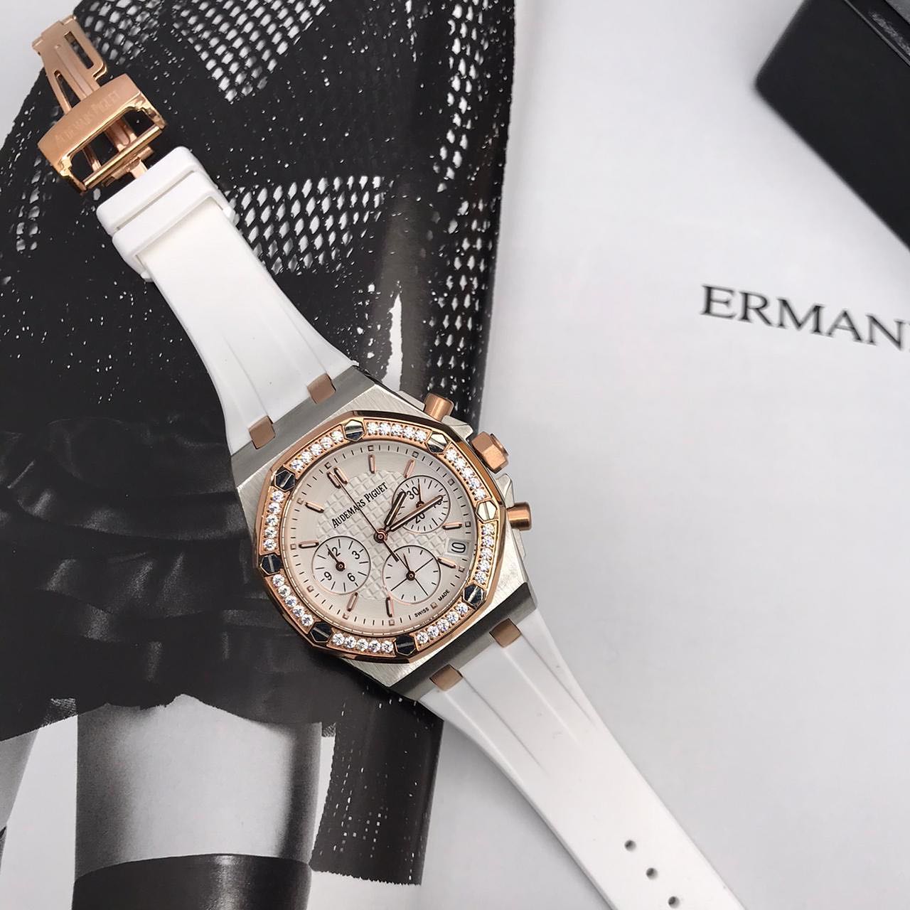 Представляем элегантные часы Aquazzura Firenze LUX-44681. Эти женские часы сочетают в себе классический дизайн и современные детали, что делает их идеальным аксессуаром для любого случая. Часы украшены сверкающими кристаллами, добавляющими роскоши и изысканности. Белый ремешок обеспечивает комфорт при носке, а циферблат с хронографом функционален и стилен.