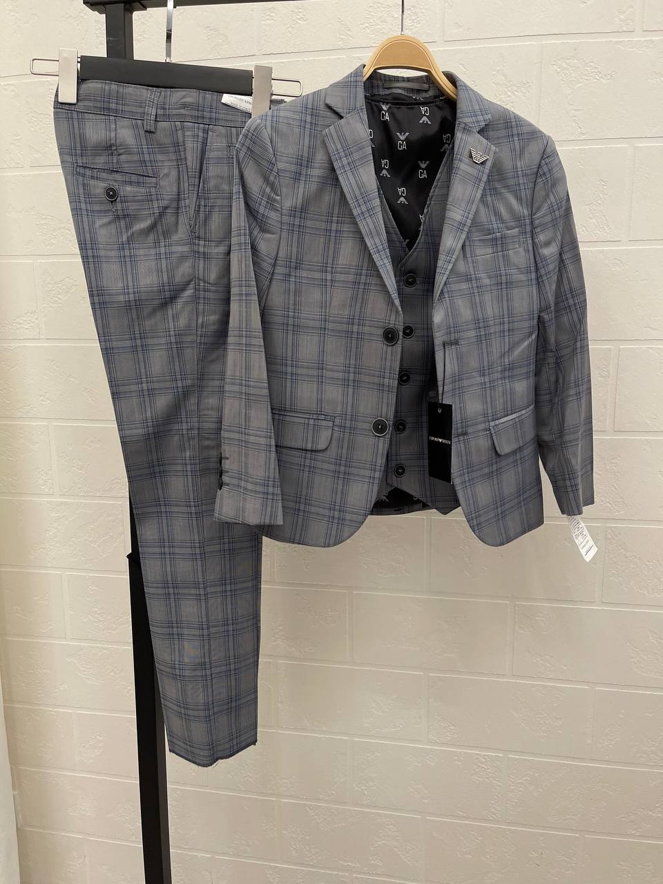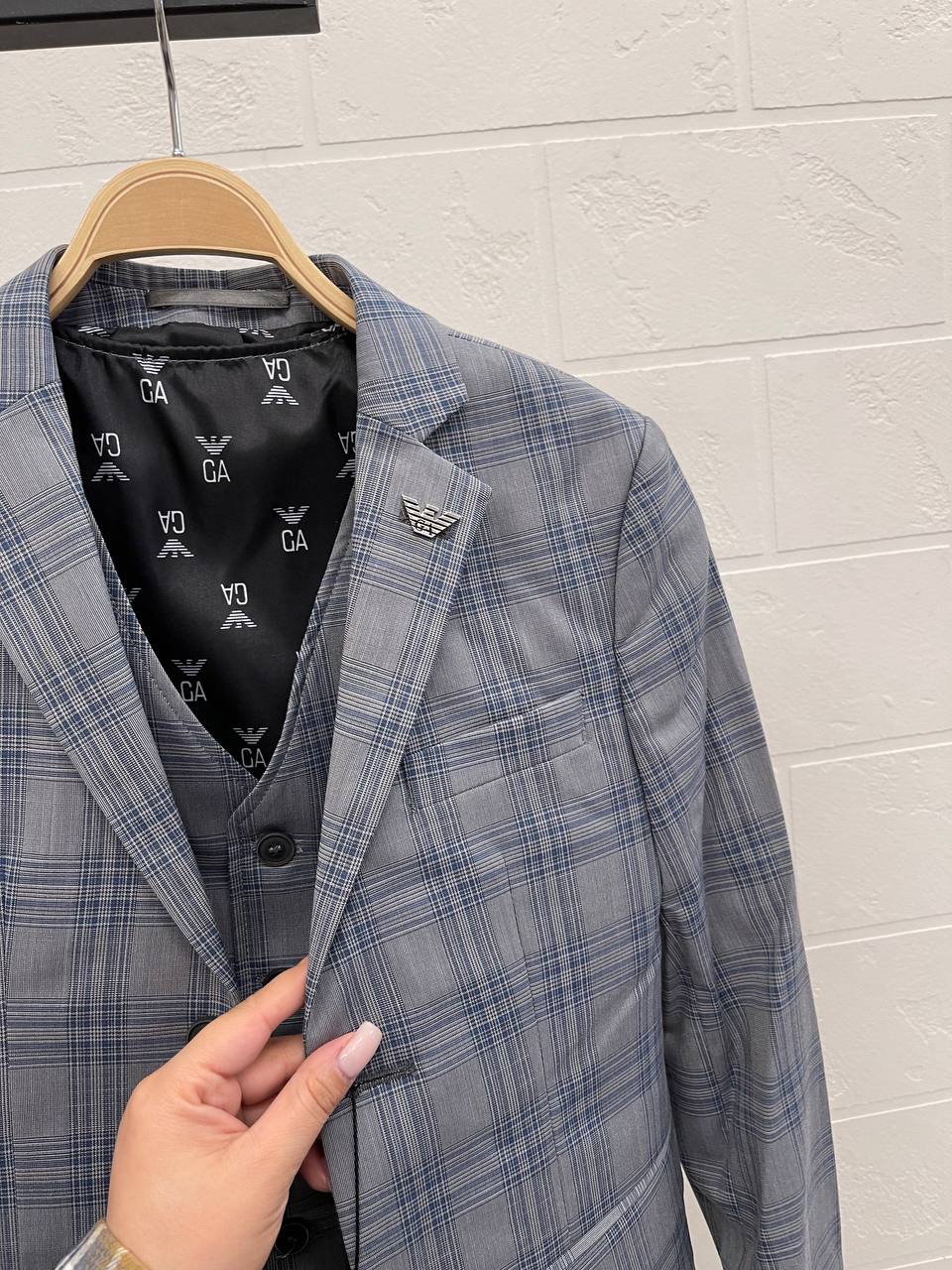 Костюм 3-ка Armani LUX-107246 - это элегантный ансамбль в классическом стиле. Костюм серого цвета в клетку, состоящий из пиджака, жилета и брюк, подчеркивает мужественность и хороший вкус. Отлично подойдет для деловых встреч, торжественных мероприятий или создания стильного повседневного образа.