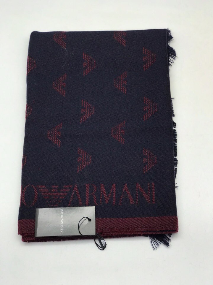 Шарф Armani АКС-027 представляет собой стильный и элегантный аксессуар. Темно-синий фон с повторяющимся узором логотипа Armani и полной надписью бренда выполнен в бордовом цвете. Шарф в классическом стиле дополнит как повседневный, так и более формальный образ.