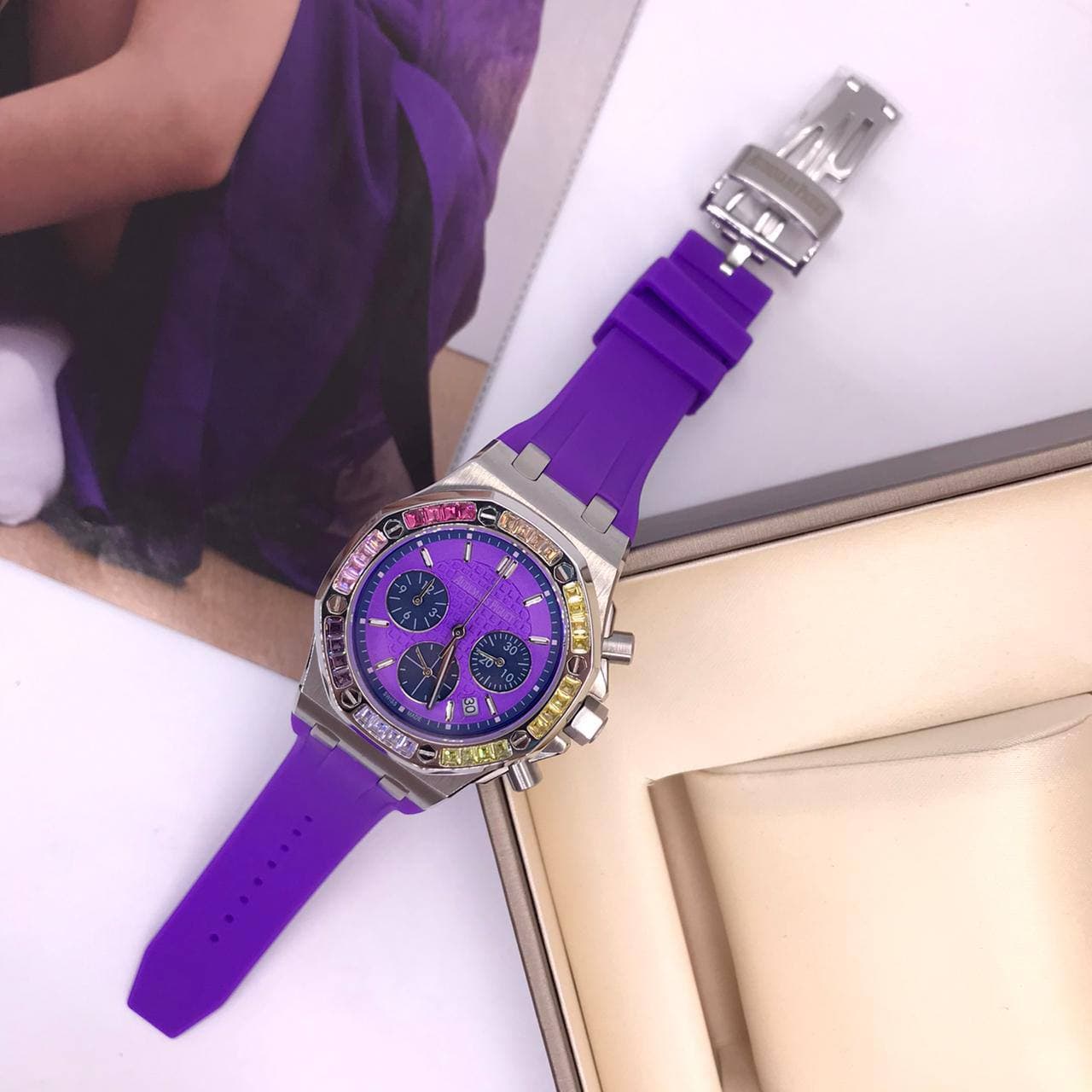 Audemars Piguet Часы LUX-54059 — это элегантные спортивные часы с ярким дизайном, идеально подходящие для современного мужчины, который ценит стиль и функциональность. Завораживающий фиолетовый циферблат, украшенный разноцветными камнями по ободку, притягивает взгляды и подчеркивает индивидуальность владельца.