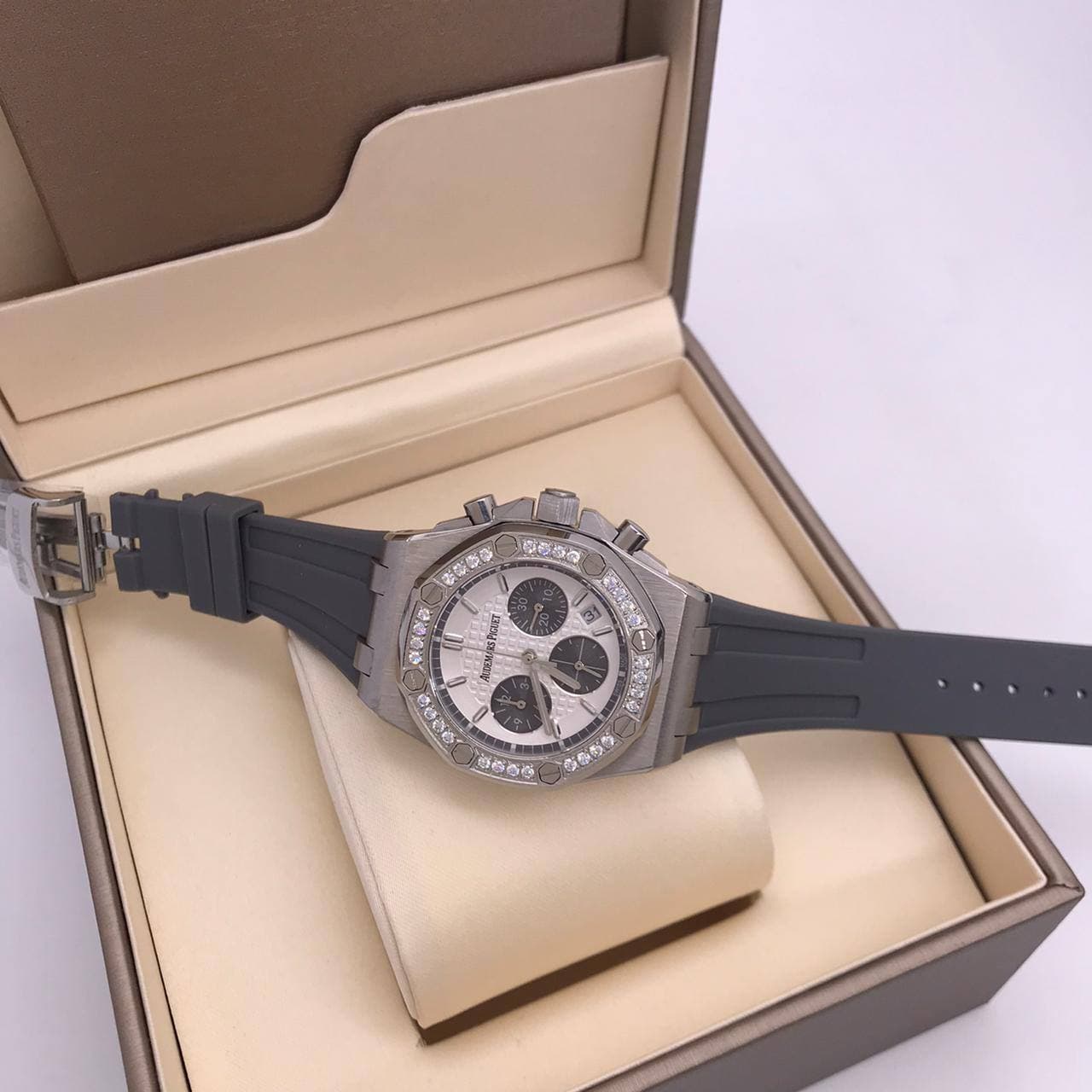 Audemars Piguet Часы LUX-54216 — это элегантные мужские часы, сочетающие в себе классический дизайн и современный стиль. Корпус из полированной стали с инкрустацией кристаллами придает изделию роскошный вид, а серый каучуковый ремешок обеспечивает комфортное ношение. Этот аксессуар идеально дополнит как деловой, так и повседневный образ, подчеркивая статус владельца.