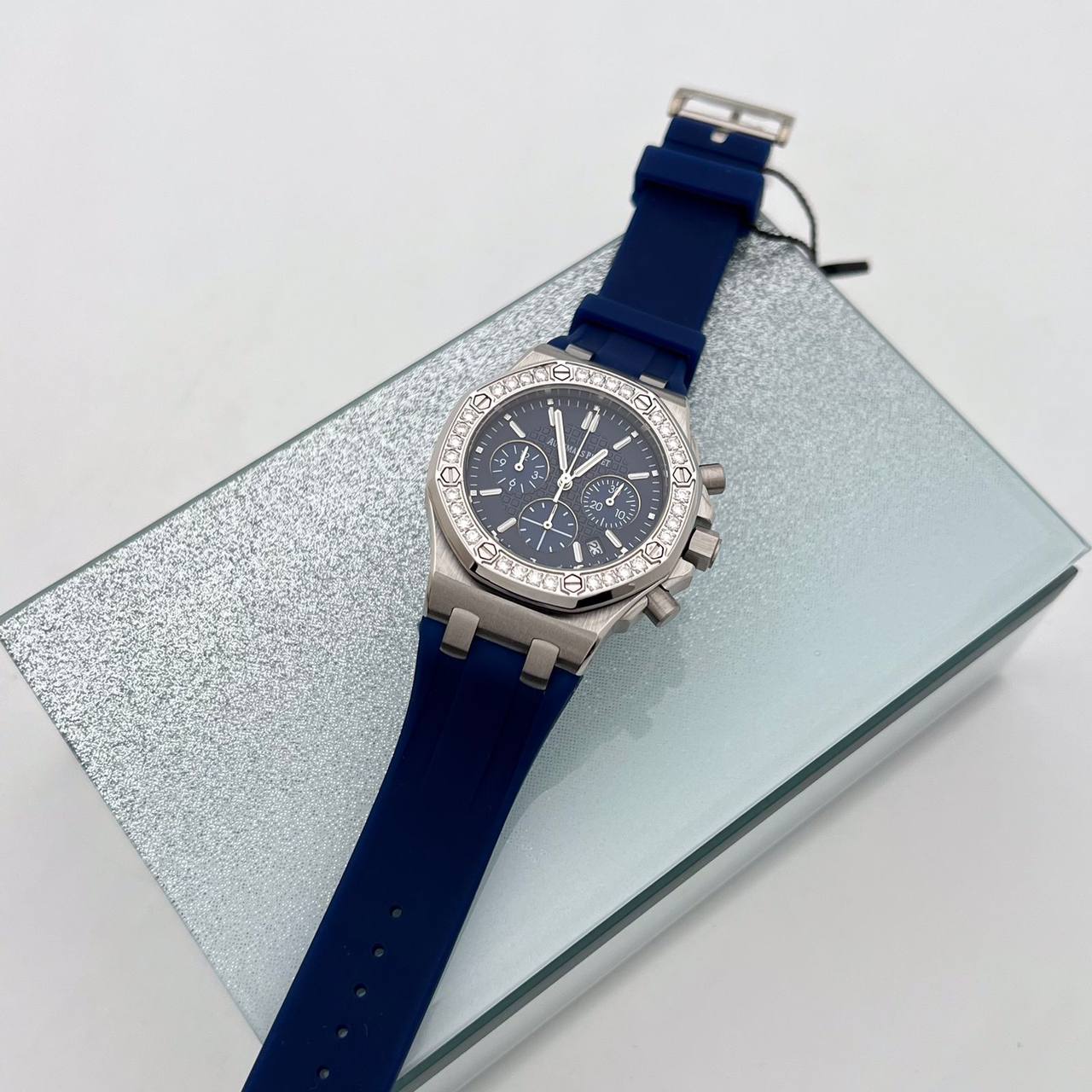 Часы Audemars Piguet LUX-104211 – это изысканные наручные часы, сочетающие в себе роскошь и функциональность. Круглый циферблат синего цвета с бриллиантами, окружен безелем с камнями, а корпус выполнен из стали. Эти часы представляют собой сочетание элегантности и спортивного стиля.